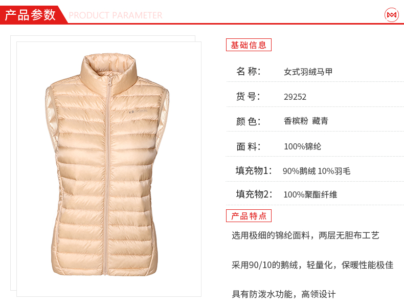 这款地球科学家女休闲防泼水羽绒马甲,内里填充90%鹅绒,保暖性比鸭绒要好很多。使用超细锦纶面料,加上防泼水处理,不易起皱,可防小雨。修身版型,袖口有包边封裹,YKK拉链,好的衣服的标配。
