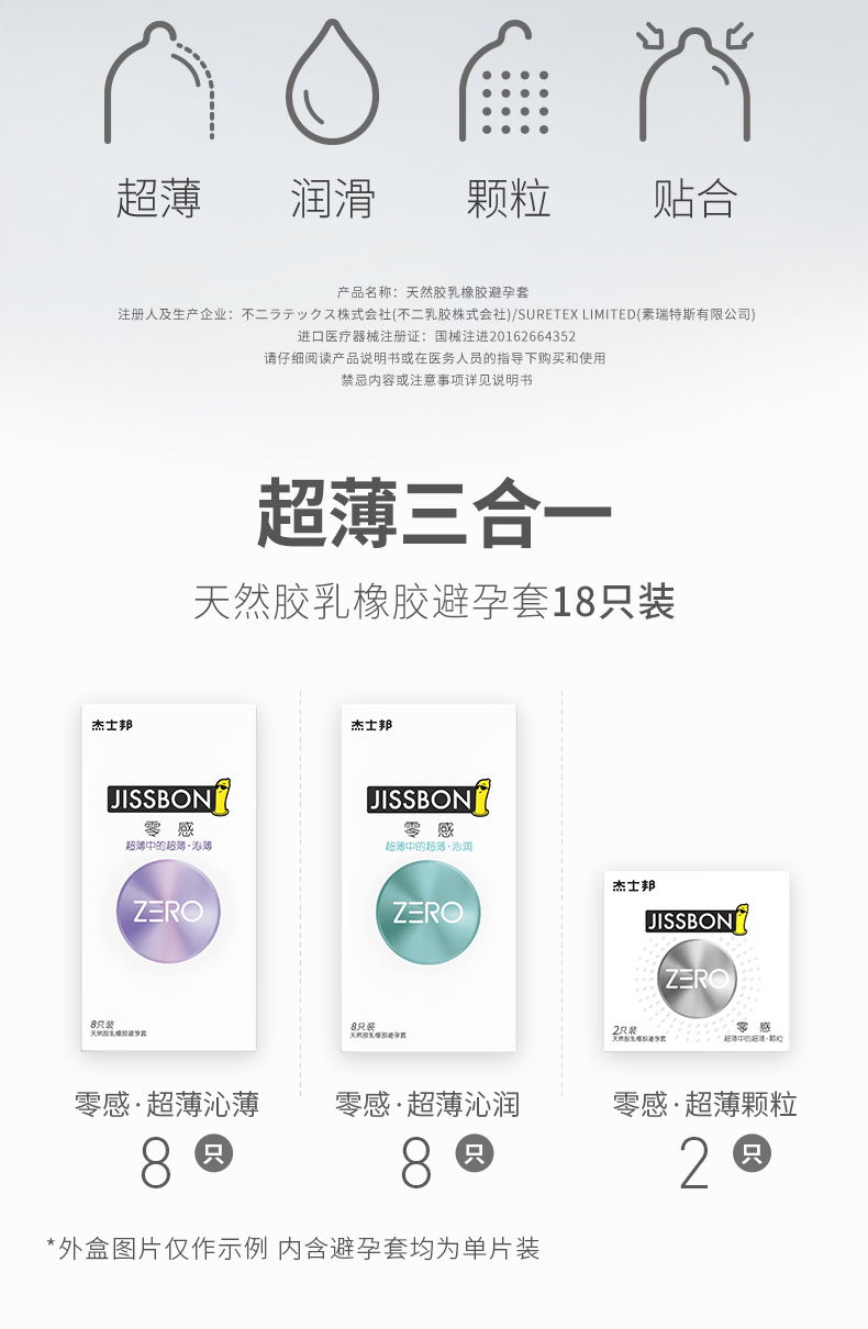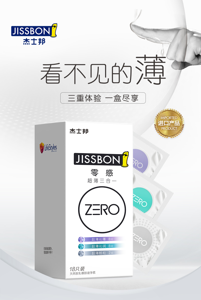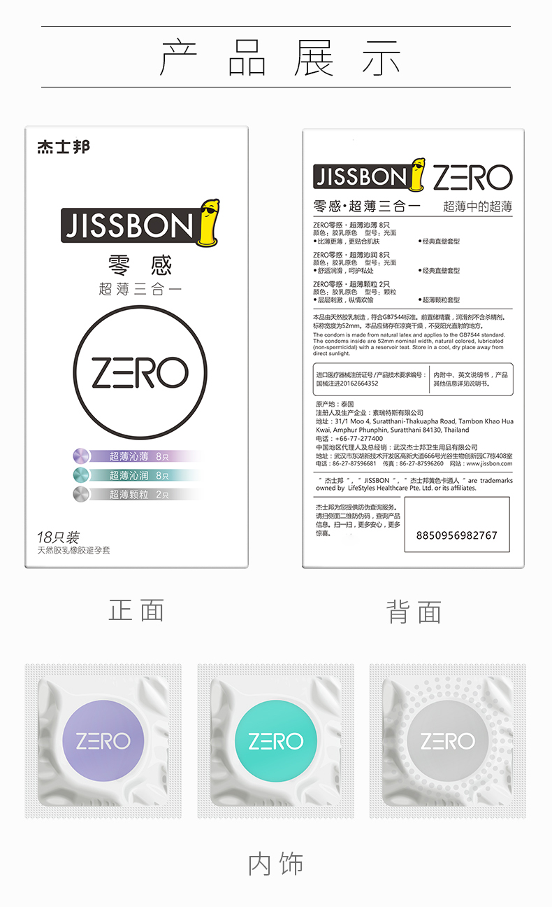 这款杰士邦 ZERO零感 超薄尊享三合一,是日本、泰国生产,国内分装的产品,采用用日本超技术,无感体验,能更好的感受到彼此的体温,添加足量高品质润滑剂,长久滋润,拒绝干涩疼痛,根据人体结构制成,不束缚,无缝隙,紧贴肌肤,更舒爽。