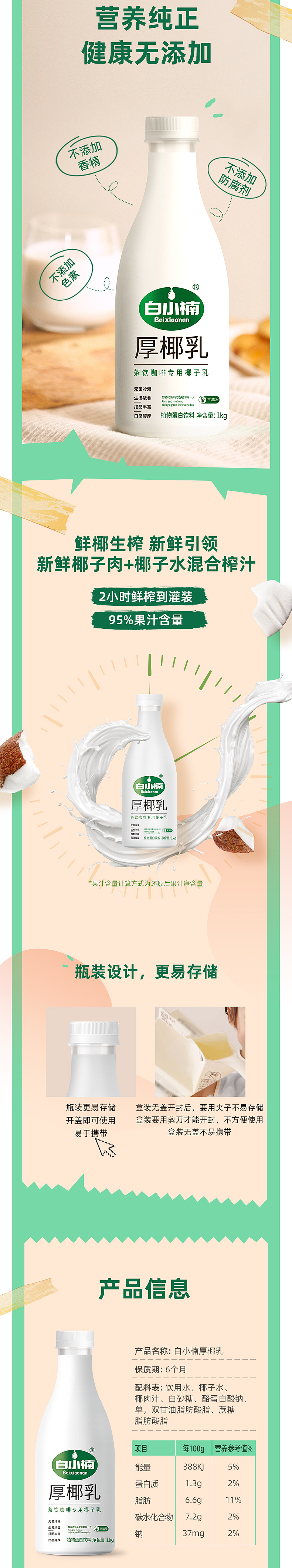 天猫白小楠旗舰店29.99元,可领11元优惠券,实付18.99元到手;白小楠椰浆厚椰乳,椰汁烘焙原料,原料甄选越南进口30年以上新鲜老树椰肉,椰汁醇厚口感丝滑,0香精、0色素、0防腐剂,德国无菌冷罐技术,保障营养不流失,茶饮、咖啡、水果捞、甜品制作佳选。