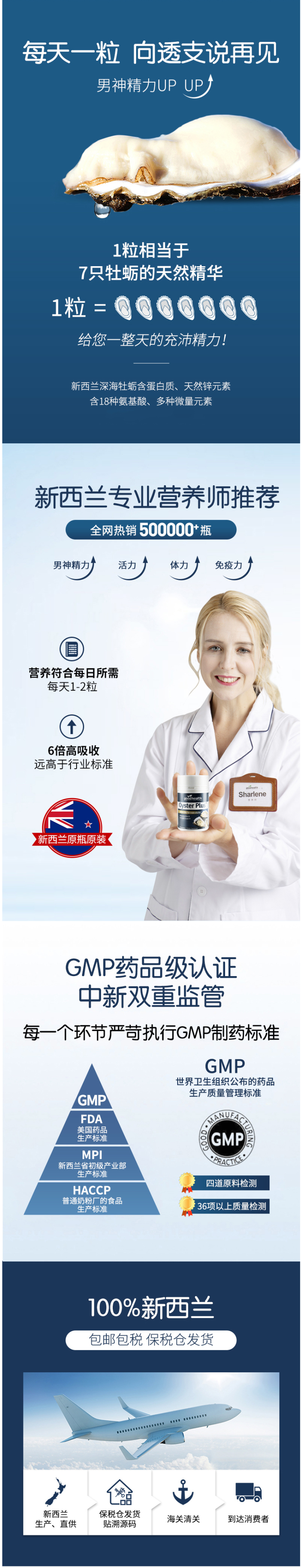 这款Goodhealth牡蛎精华胶囊,新西兰原装进口,采用新西兰海域中的牡蛎制成,天然纯净,每粒含有350毫克的牡蛎粉,1颗牡蛎胶囊等于7只牡蛎;牡蛎中含有大量的精氨酸与促进额尔蒙分泌的微量元素亚铅,长期服用,可保护生殖系统。