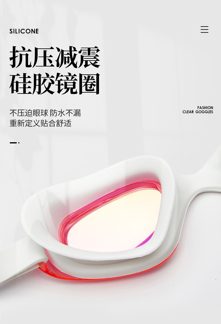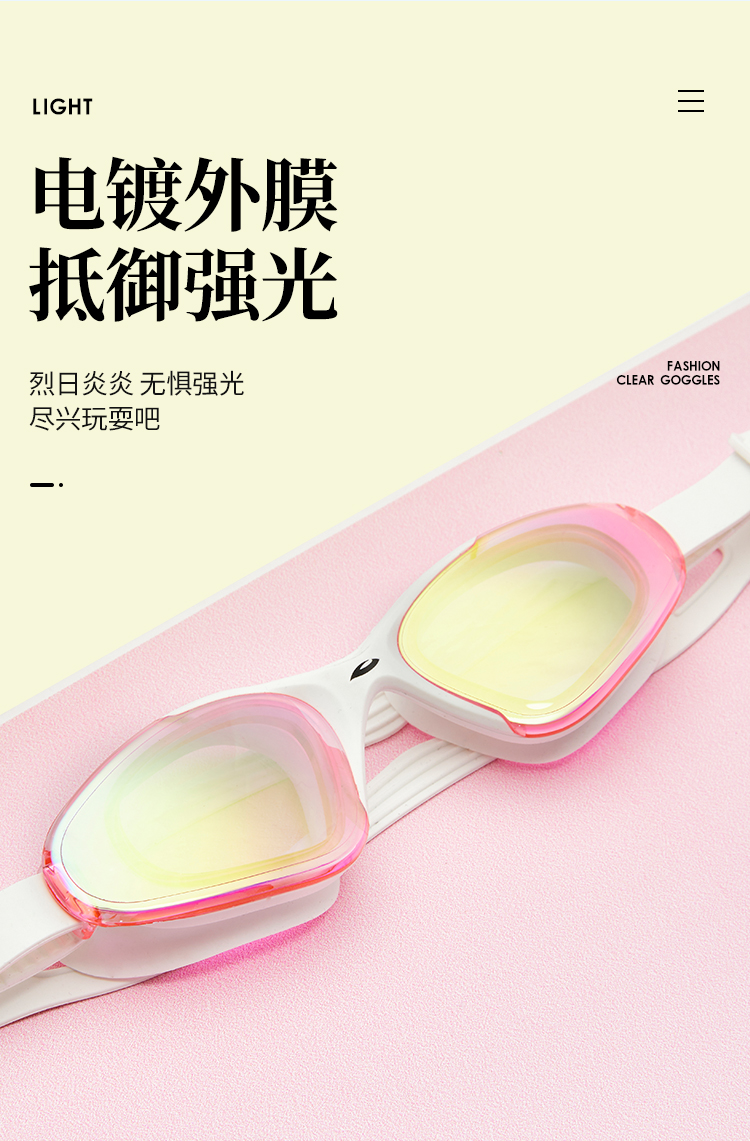 这款浩沙 高清防雾电镀泳镜,采用优质聚碳酸酯制成的通透镜片,无杂点水下视野清晰,镜片表面还有科技亲水防雾层,避免镜面挂满水珠,减少雾气、水珠对视野的干扰;