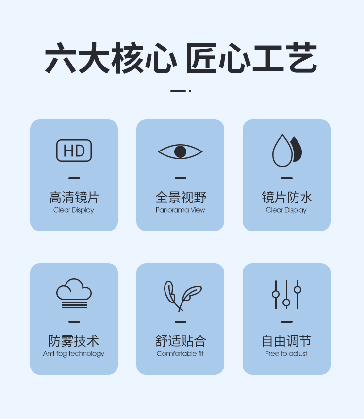 立体镜圈设计,柔软的优质硅胶封圈,能很好的贴合脸部轮廓,防水不勒眼眶。有3个尺寸的鼻桥,可根据需要更换,紧密贴合你的脸部。