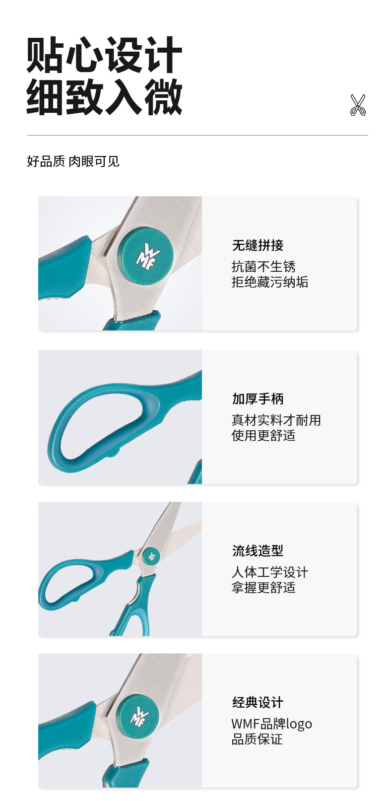 天猫seb旗舰店69元,可领30元优惠券,实付39元到手,WMF 福腾宝 Tough系列 黑色厨房剪刀,刀身采用优质不锈钢,刀刃精心打磨,刀面抛光精细,兼具硬度和锐利,可剪鸡爪等禽类的骨头,锋利耐用,且不易腐蚀,手柄采用人体工程学设计,拿握使用更加方便舒适,刀身总长21cm.