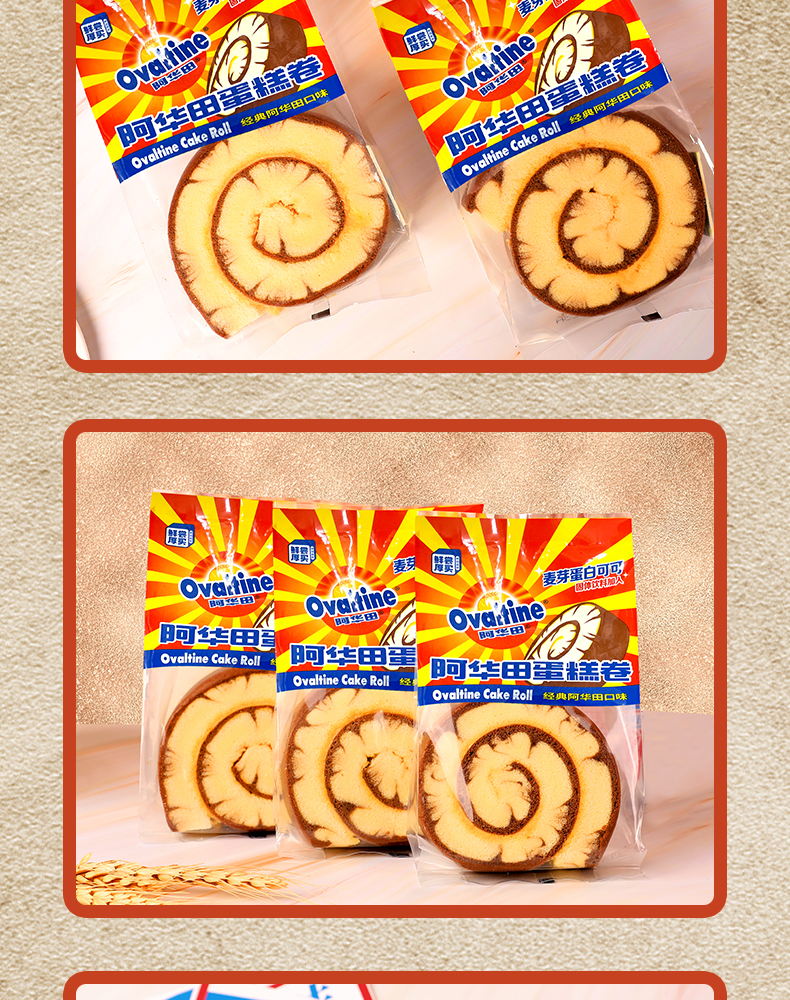 阿华田新品的蛋糕卷,精选优质小麦粉和新鲜土鸡蛋,搭配香醇乳粉和经典麦芽蛋白阿华田可可粉,新鲜制作,具有丝滑细腻的口感,单个便携独立包装,食用方便,很不错的小零食。
