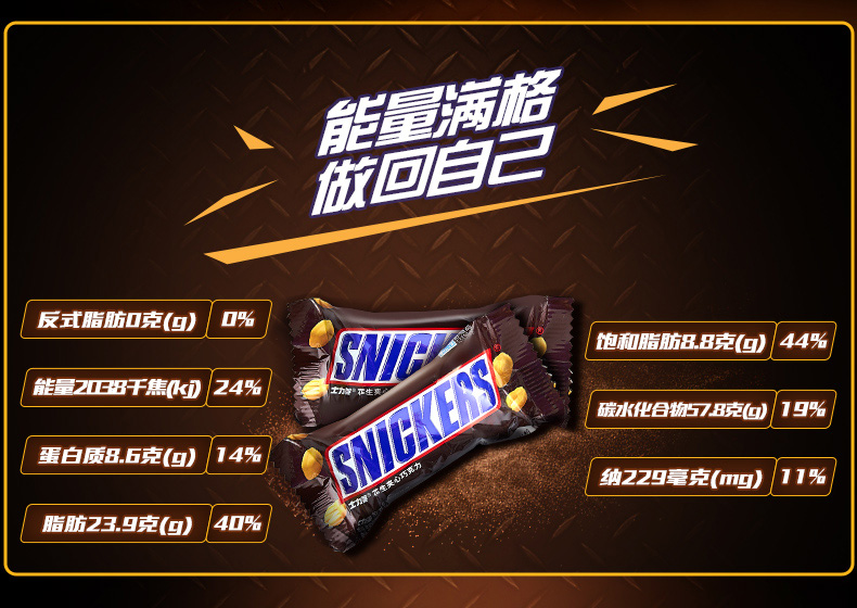 天猫士力架官方旗舰店129.9元,可领30元优惠券,实付99.9元到手,士力架花生夹心巧克力也是能量型巧克力的代表产品了,在办公室或者野外时横扫饥饿,补充能量也就靠它了。外层牛奶巧克力香浓丝滑,花生与焦糖的完美融合,关键时刻来一条,迅速补充体力。规格:散装2斤装 约47根左右。