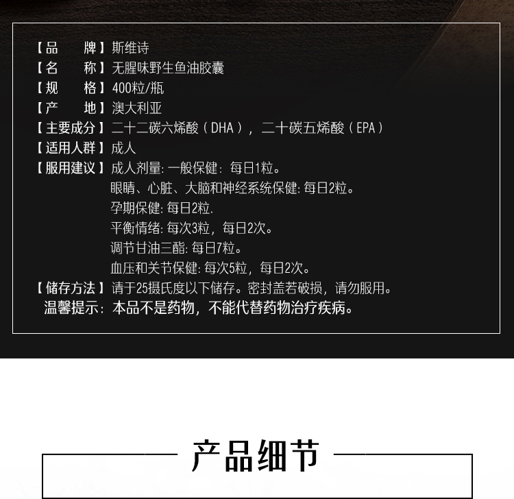 选用南太平洋接近南极地区的深海小鱼,纯净无污染,无腥味设计,可以免受腥味的刺激,还添加了薄荷油及天然香草,清新好味道,无人工香料、人工添加剂、化学物质,健康新鲜。深海鱼油含有Omega-3、EPA、DHA等有益成分,有助于降三高和软化血管的作用,有助于健脑益智,提高免疫力,适合所有人群。