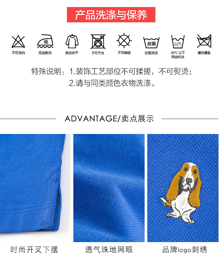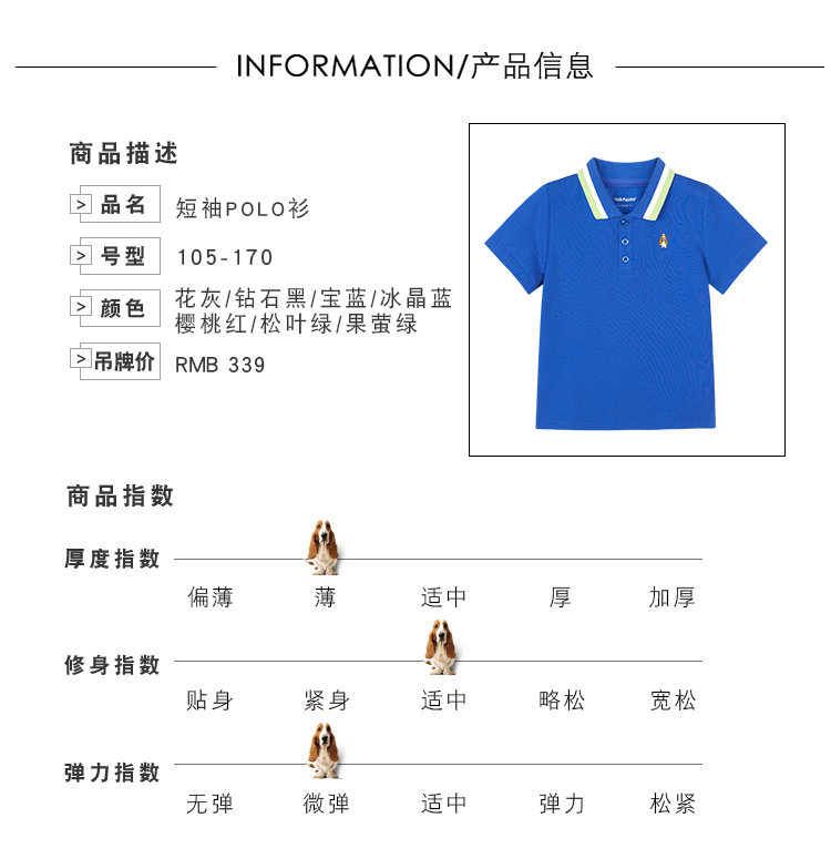 合体版型,底部下摆开叉设计,活动更自如,彩色撞色螺纹翻领,挺括有型,半开身纽扣设计,自由调节高度,穿脱方便。胸前经典的猎犬logo刺绣,醒目吸睛,彰显品质感。
