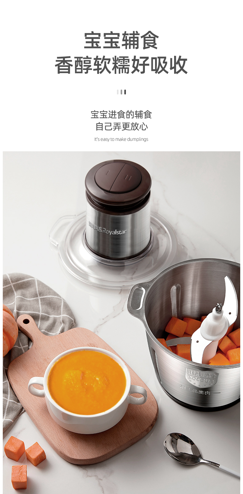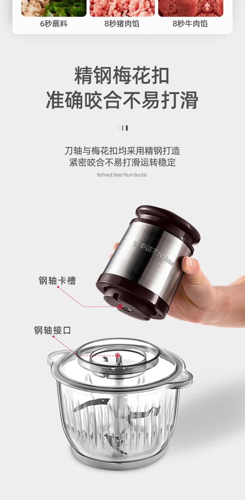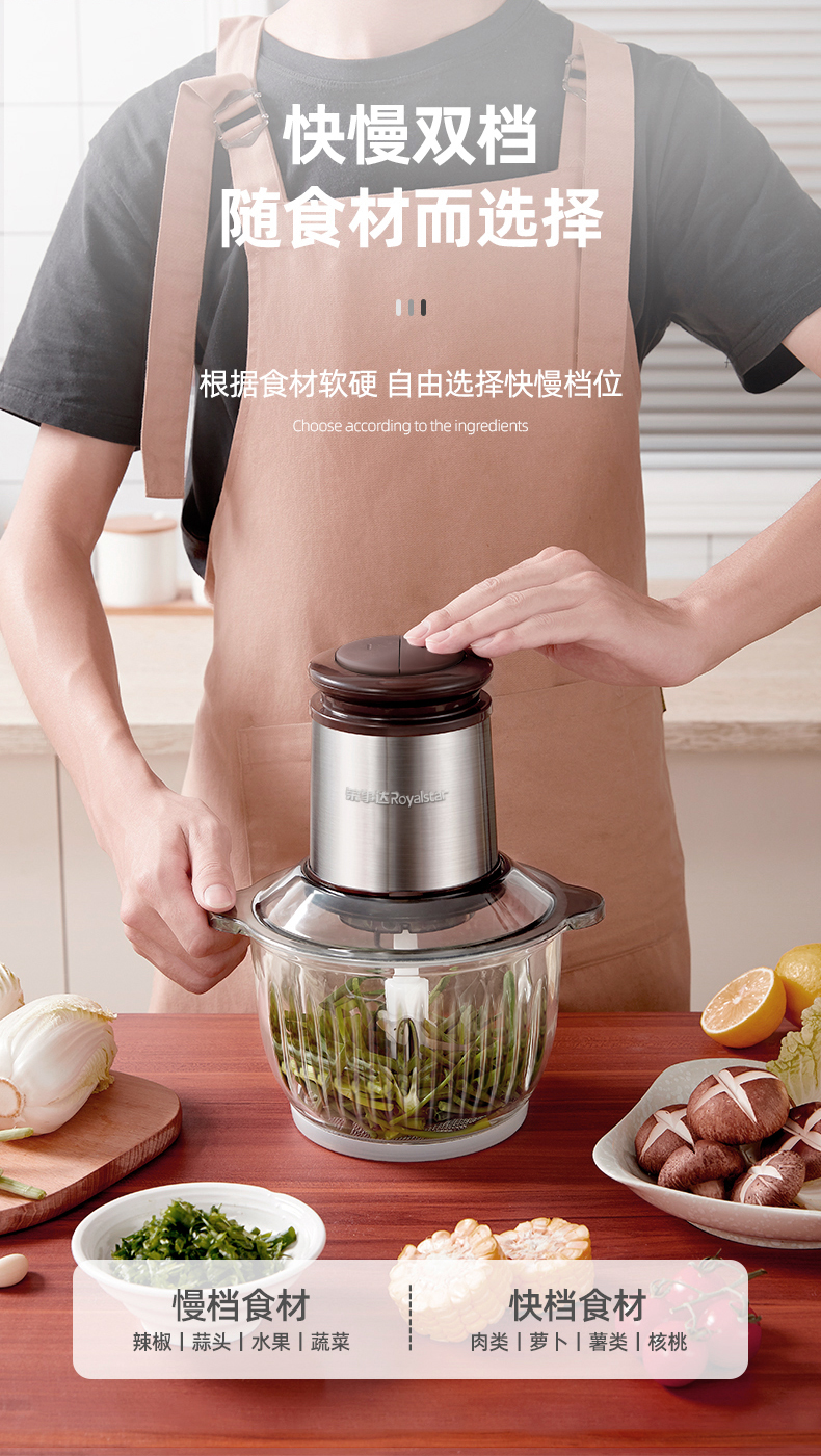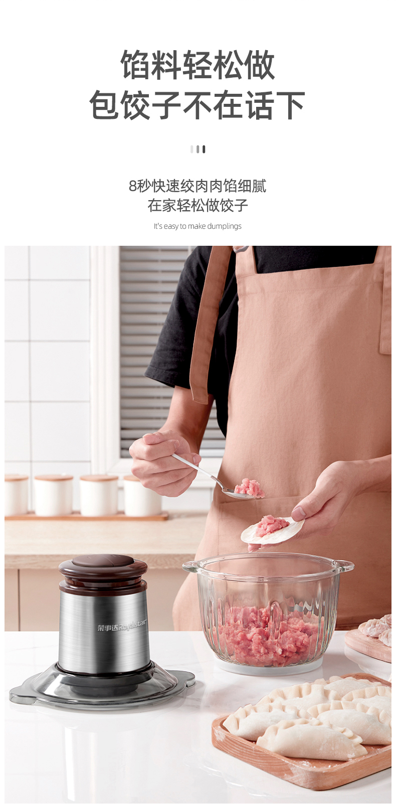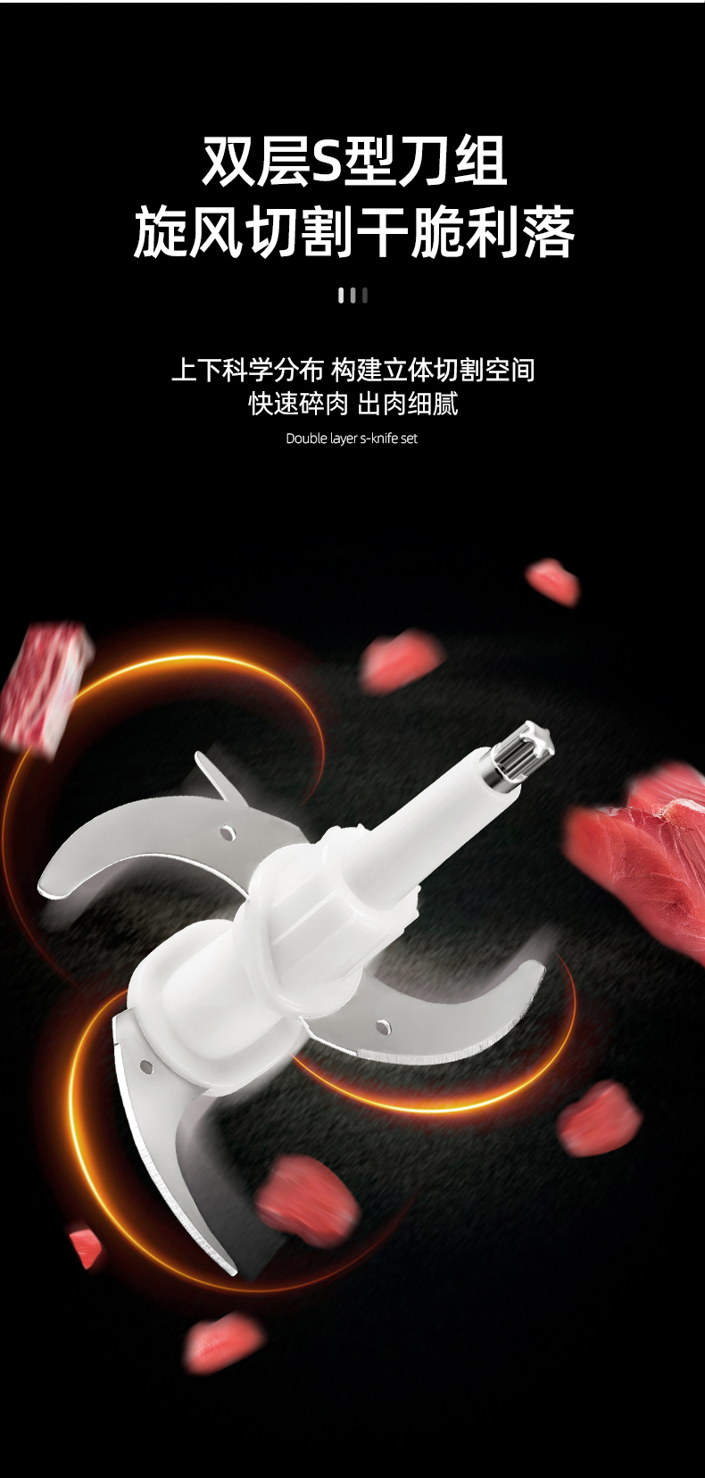 这款荣事达多功能电动绞肉机,可以用来搅碎肉类、酱料、辅食、蔬菜,采用双层四维刀锋,搅碎快速方便,拥有快满两个档位,松手后刀组立马停止运转,防止刀片一直运转。6秒绞肉碎菜,均匀细腻,解决烹饪难题,尤其吃水饺哈!