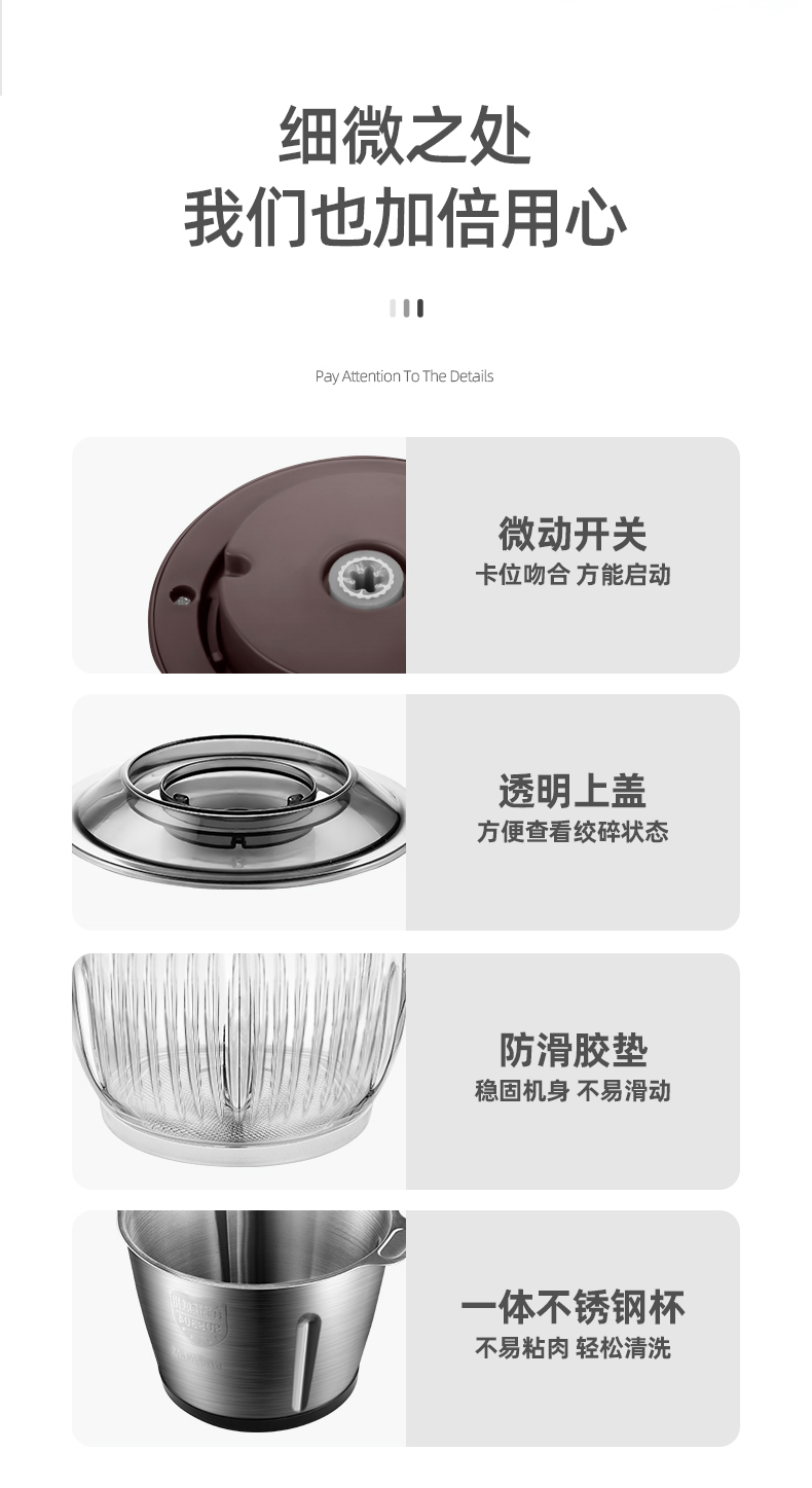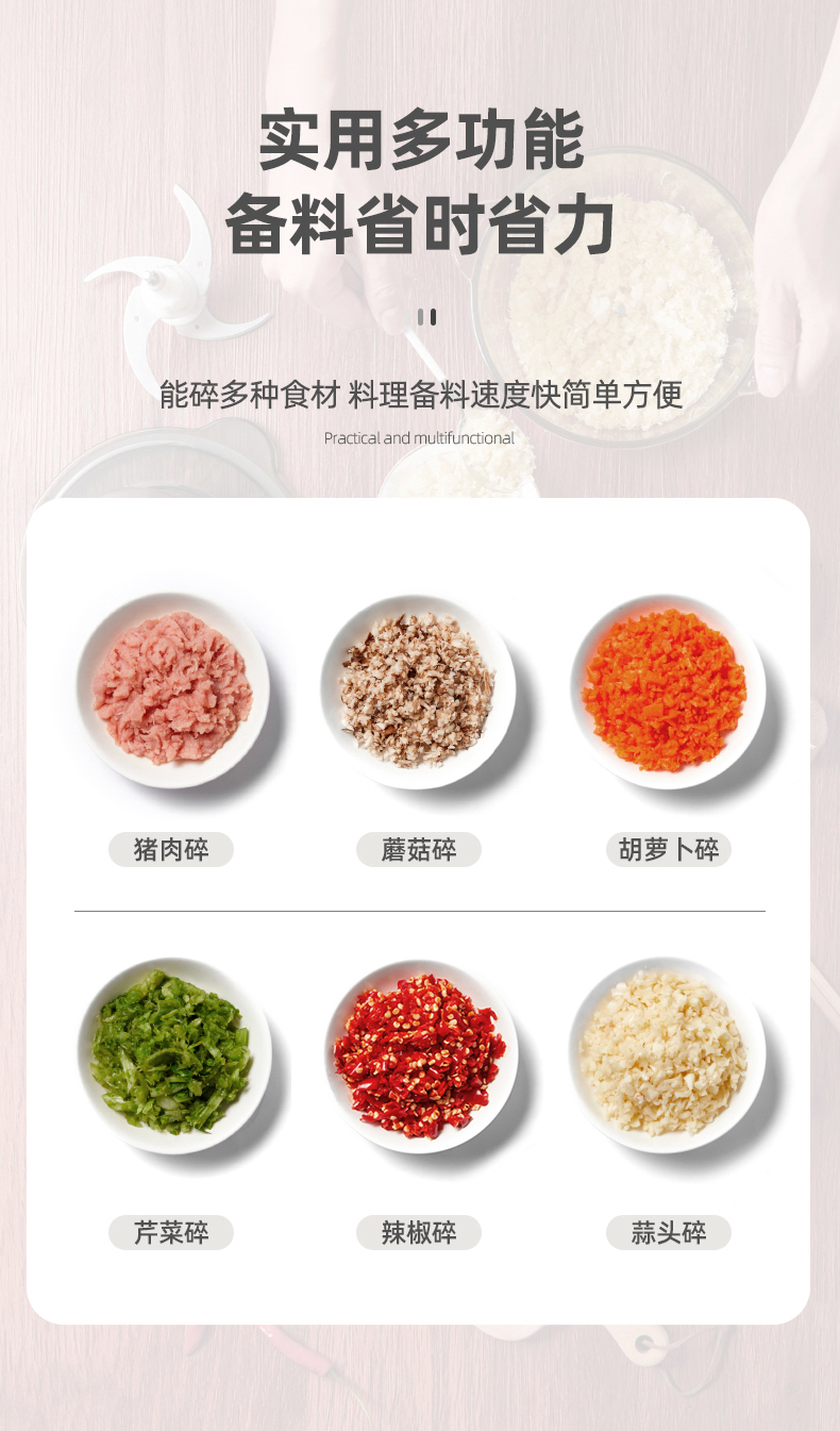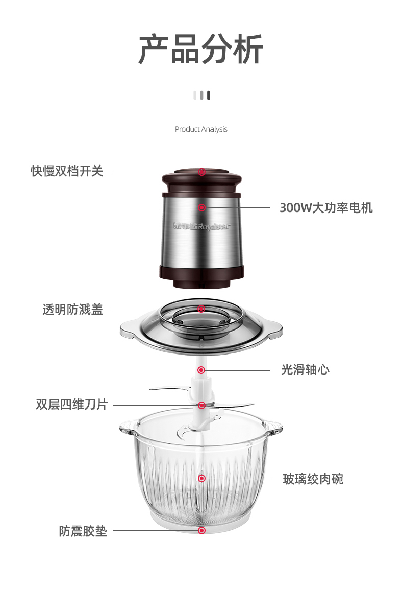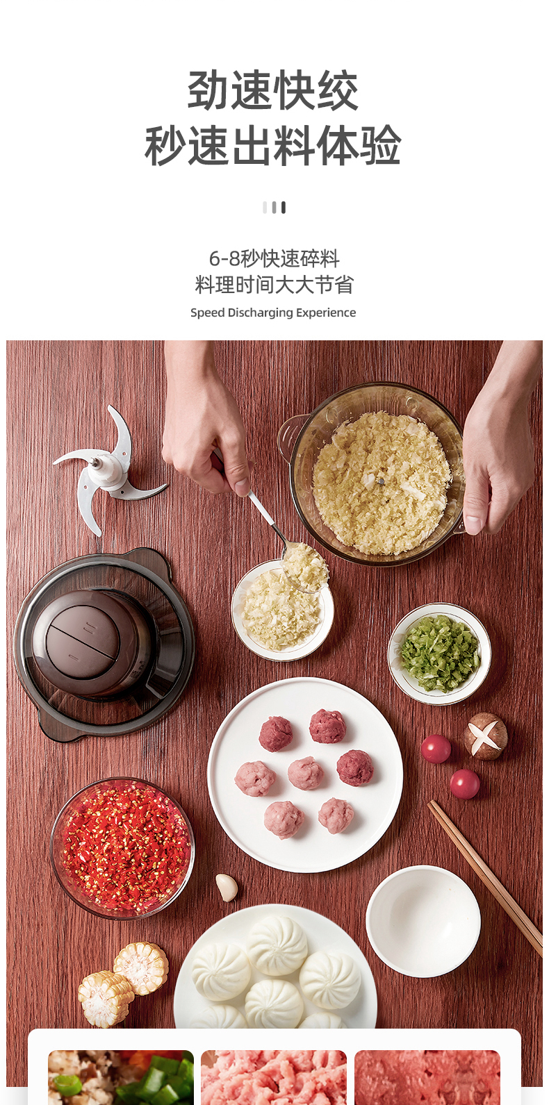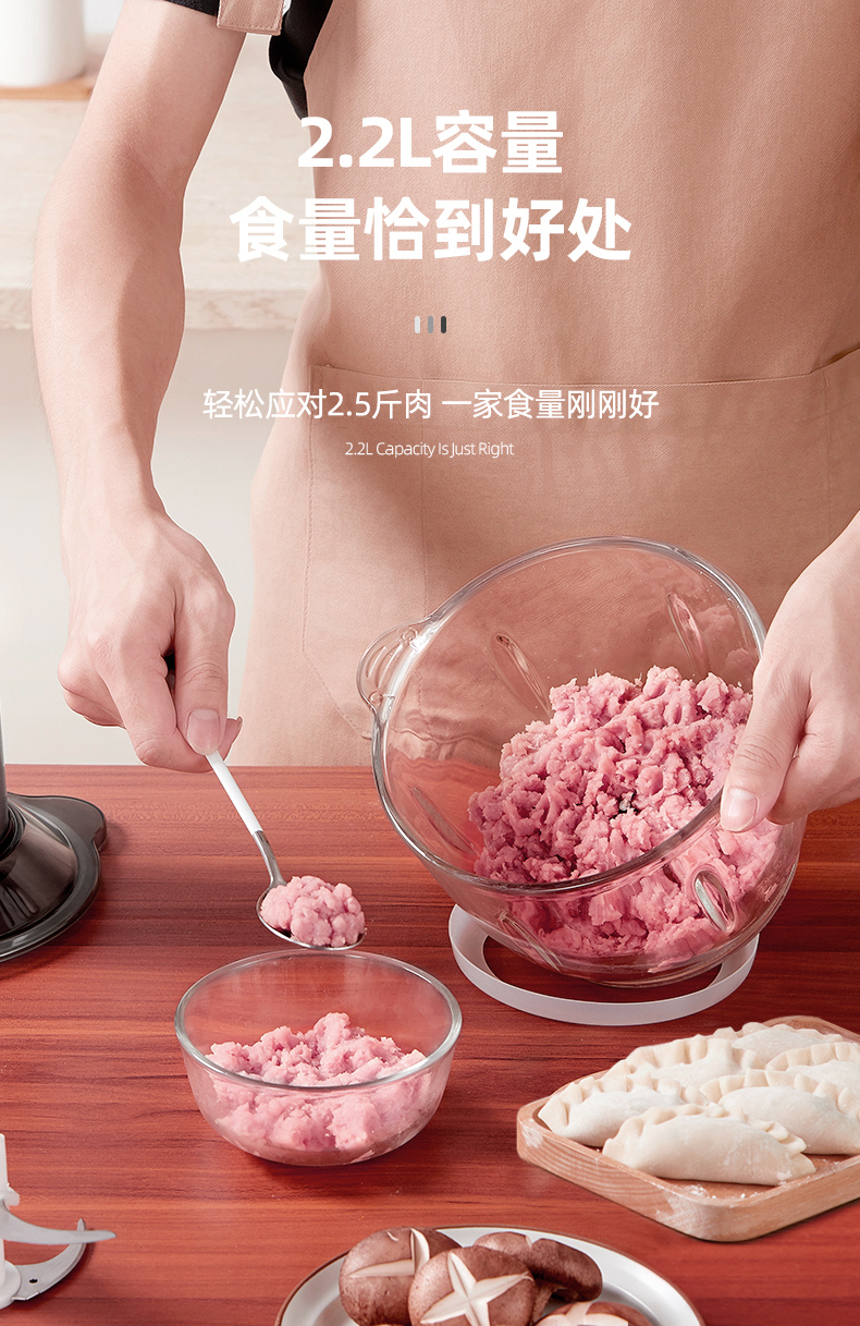 这款荣事达多功能电动绞肉机,可以用来搅碎肉类、酱料、辅食、蔬菜,采用双层四维刀锋,搅碎快速方便,拥有快满两个档位,松手后刀组立马停止运转,防止刀片一直运转。6秒绞肉碎菜,均匀细腻,解决烹饪难题,尤其吃水饺哈!