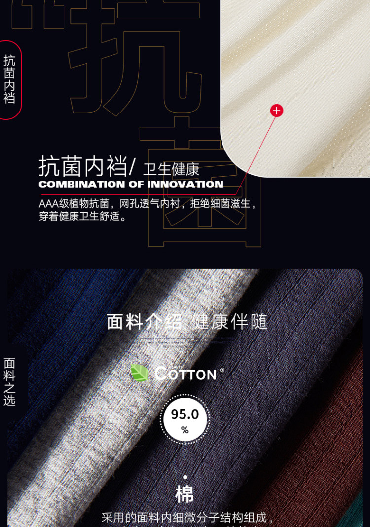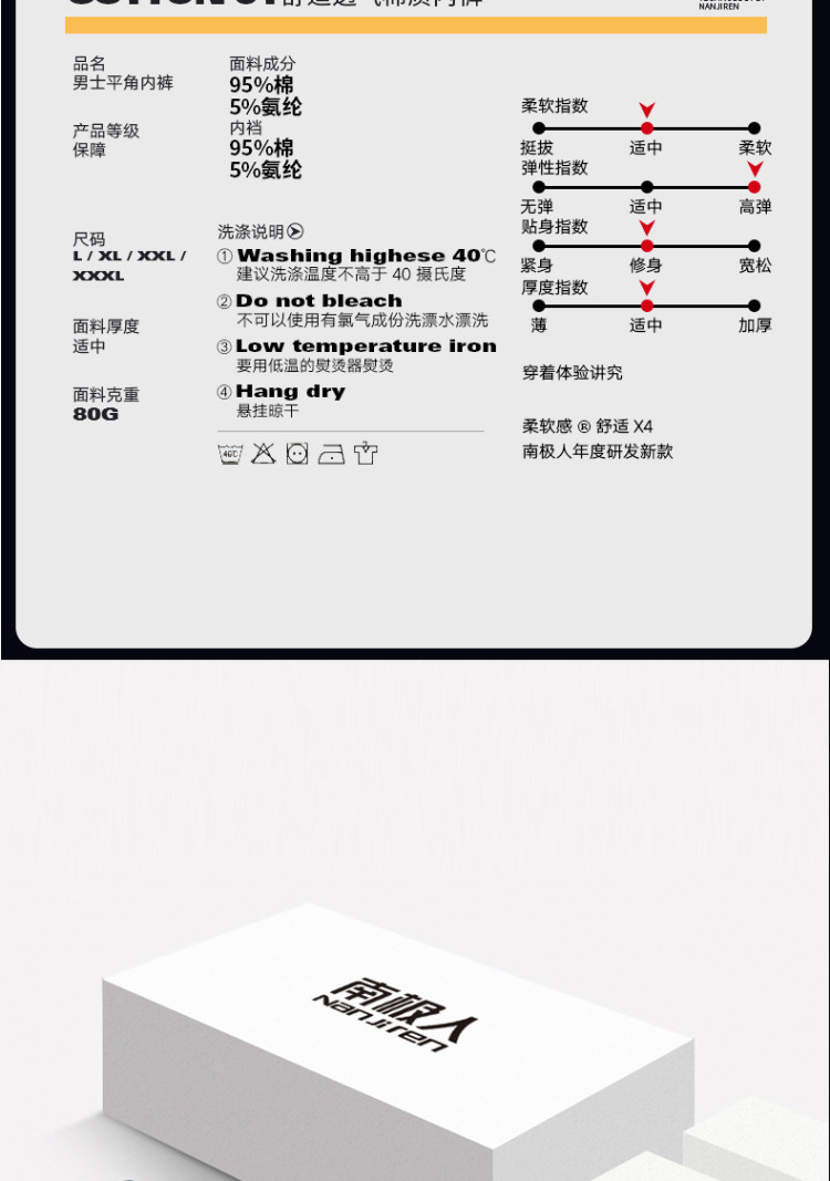 精选面料采用95%棉+5%氨纶,莱卡面料制作内衣的好面料,天然健康,干爽透气,柔软富有弹性,四条礼盒。折合4元一条,大品牌的质量,地摊货的价格。性价比较高。