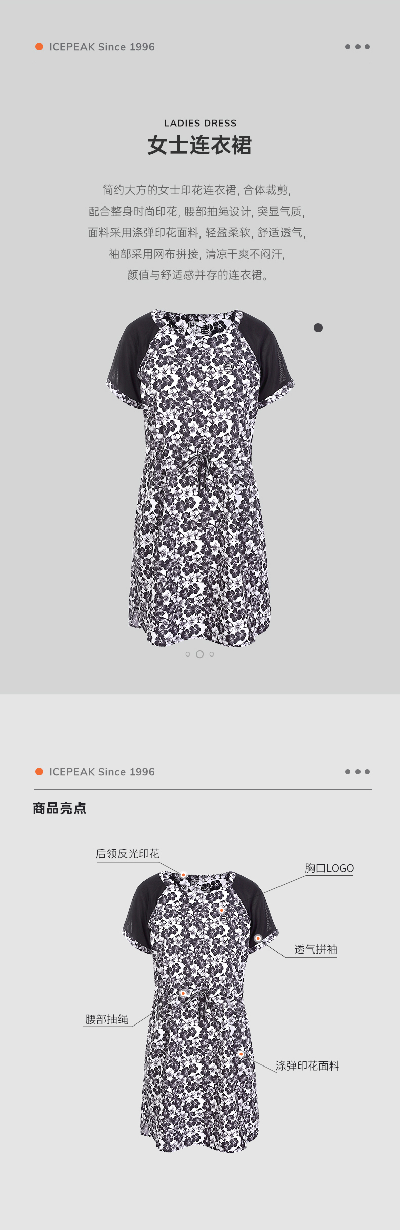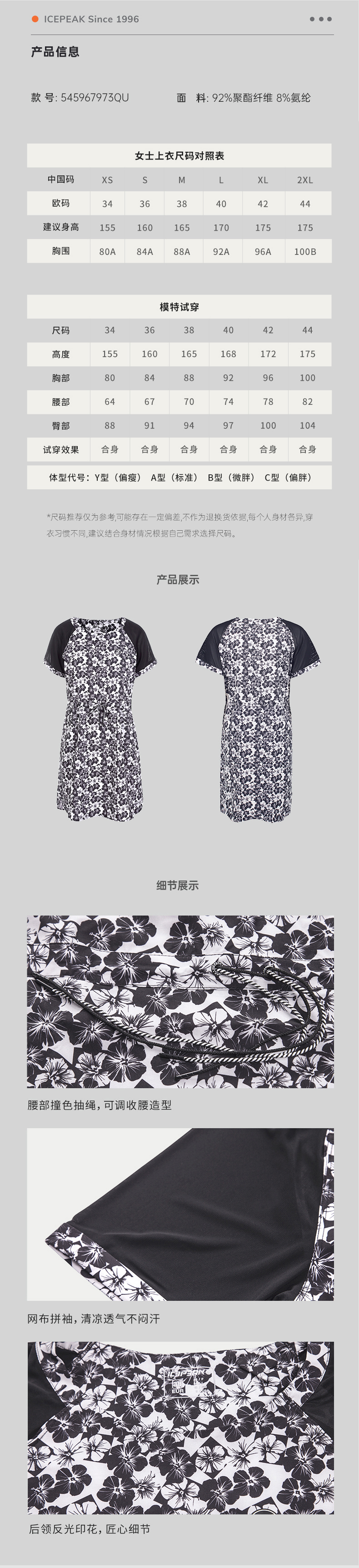 这款艾斯匹克icepeak 女收腰透气连衣裙,使用92%%聚酯纤维+8%氨纶弹力混纺而成,摸起来柔软透气又舒适,光滑细腻不粗糙,柔韧不起球,上身不紧绷。