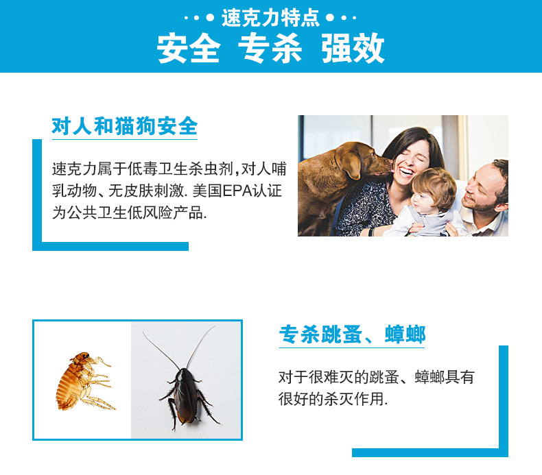 德国巴斯夫出品的速克力,主要成分是呋虫胺,对于拜尔吡虫啉杀灭不了的跳蚤和蟑螂有非常好的灭杀效果,杀灭率几乎为100%,而且是触杀型,一次喷药,至少可以保持7天药效,同时对狗和人没有伤害,是最好用的蟑螂跳蚤药之一,夏天各种小虫都出来了,家里有烦人小虫的可以试试这款速克力。