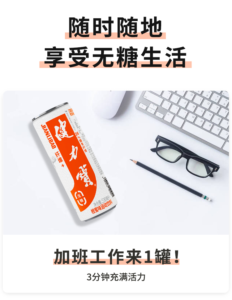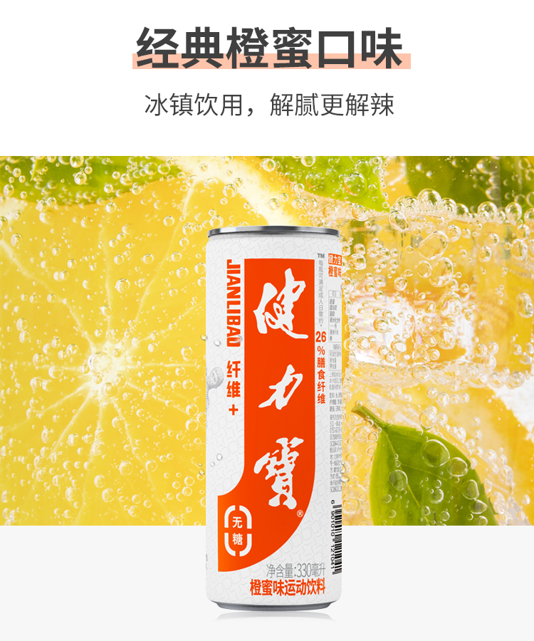 健力宝运动饮料,80年经典口味,富含碱性电解质、天然蜂蜜、不含咖啡因,能促进体内酸碱平衡,帮助消除疲劳,快速恢复体力,浓浓橙汁味,气泡丰富,刺激味蕾,冰镇后口感更佳。