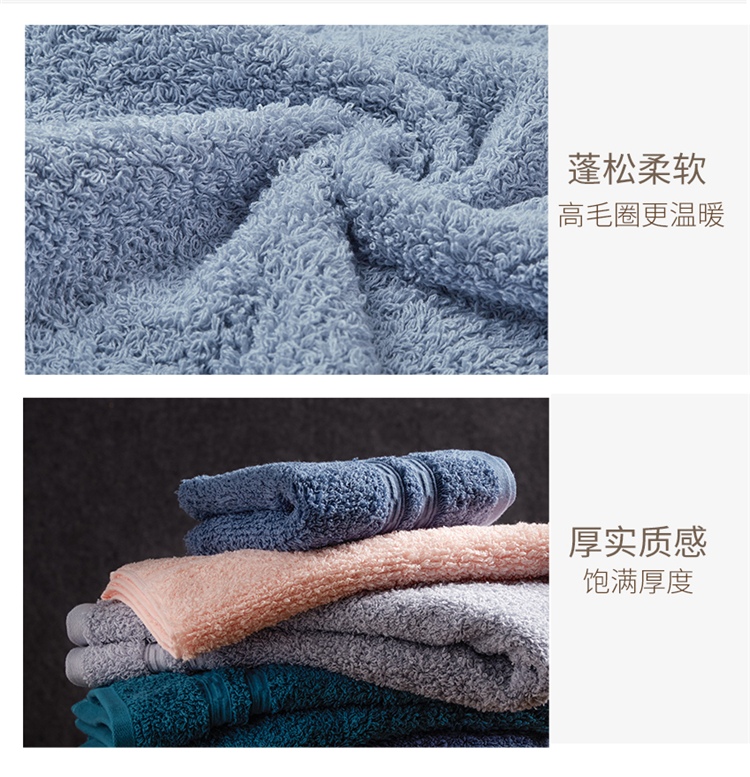 外观设计发明专利,高毛圈组织结构。面料甄选新疆精梳棉纱,纤维柔长,触感柔软,特殊织造工艺,两朵毛圈变成一朵高毛圈,去除短毛绒,增添固接组织,不易勾毛不易掉毛,够长久保持饱满厚实,强力吸水,拥有海绵一样的使用感受,