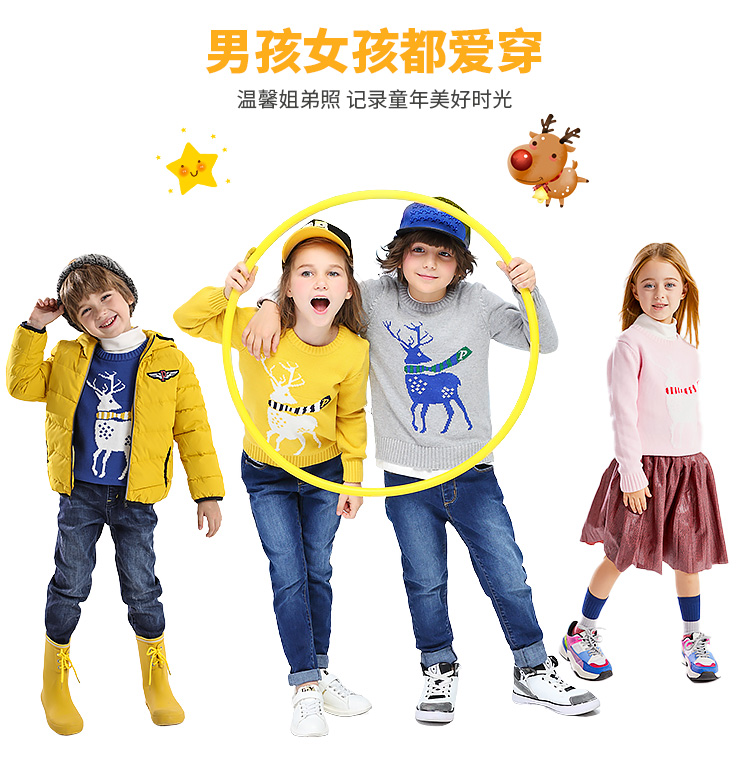 男女童多款可选,80~170码全。小猪班纳品牌儿童套头针织衫,比线下实体店便宜很多,纯棉高弹银丝钩织提花,穿上洋气舒服。