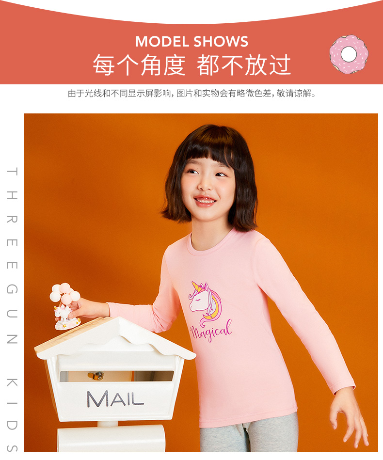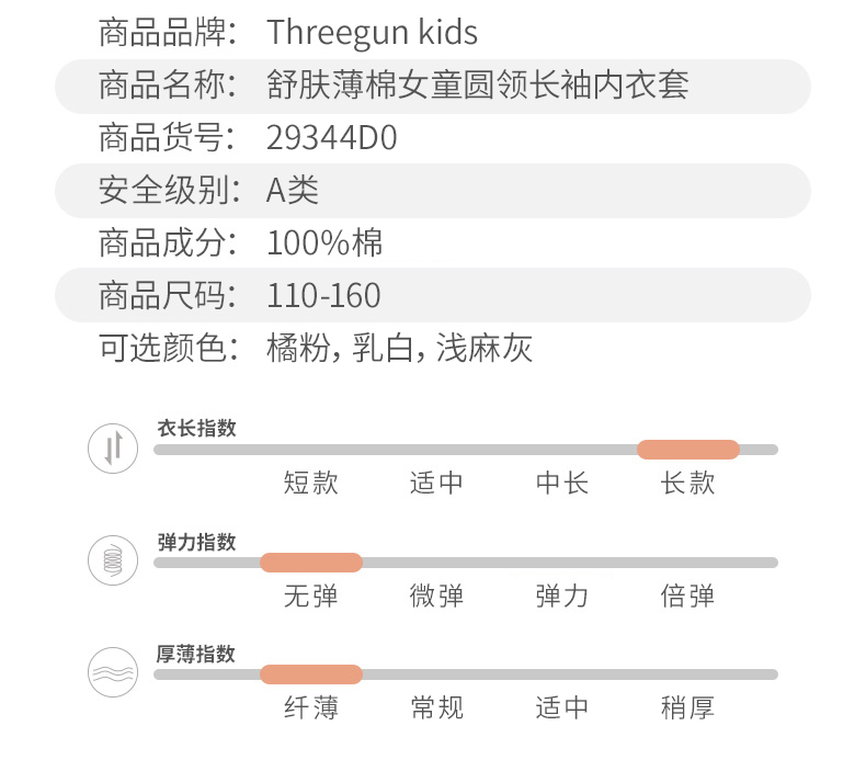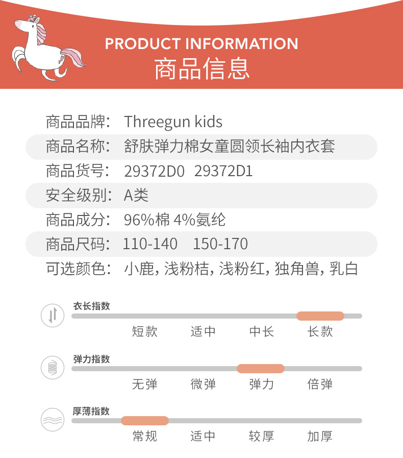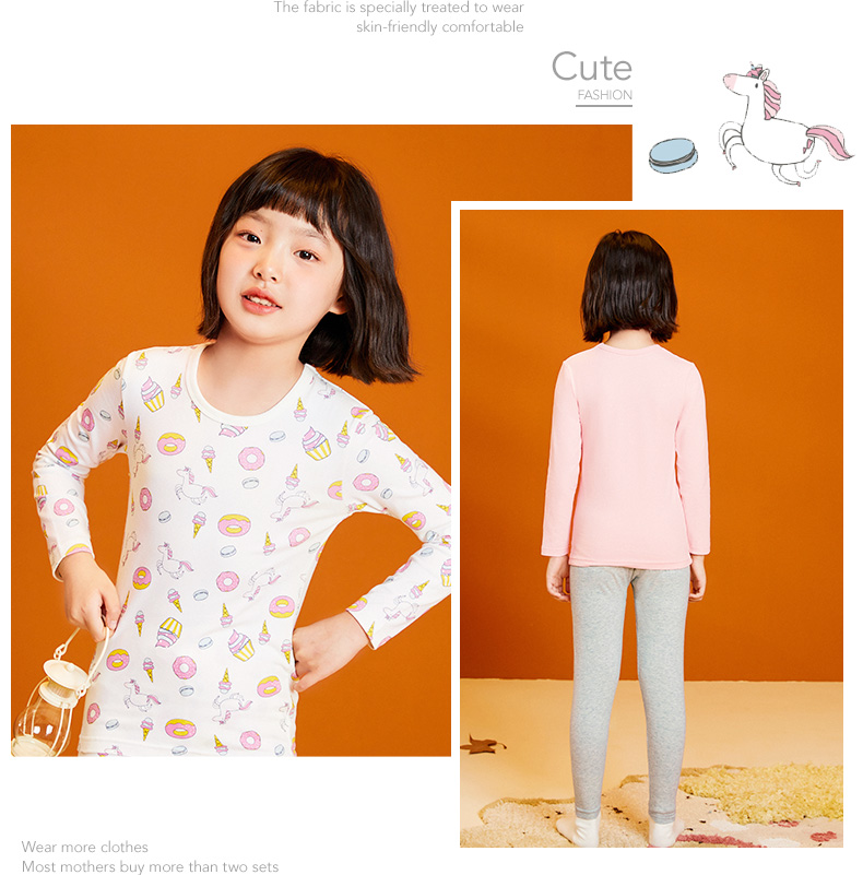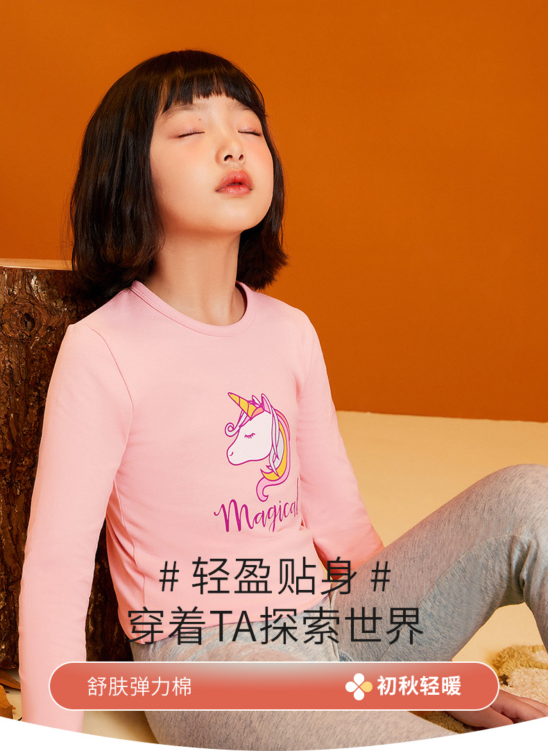 三枪儿童内衣套装,精选新疆精梳棉,精梳处理去除短纤维和杂质混入4%氨纶,面料超柔亲肤,超柔软吸湿透气,不易起球不易掉色,A类品质,无甲醛、无荧光剂,穿着贴身舒服无束缚。