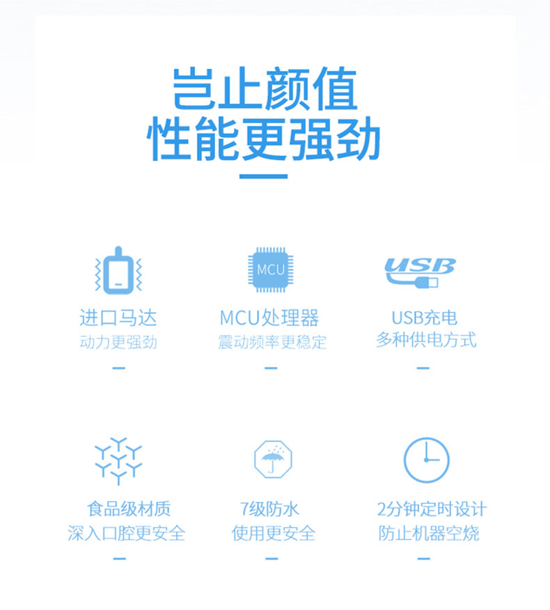 智能芯片精准控压水流,水压高达130PSI,产生1200次/分钟高频脉冲水流,轻松冲洗口腔内残渣污垢。15档位任意挑选,2500毫安超大锂电池,充电一次可以使用60天,IPX7级防水,洗澡淋浴皆可使用,FDA食品级认证。