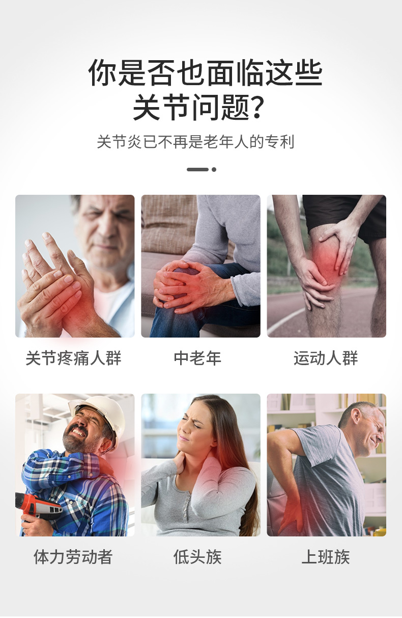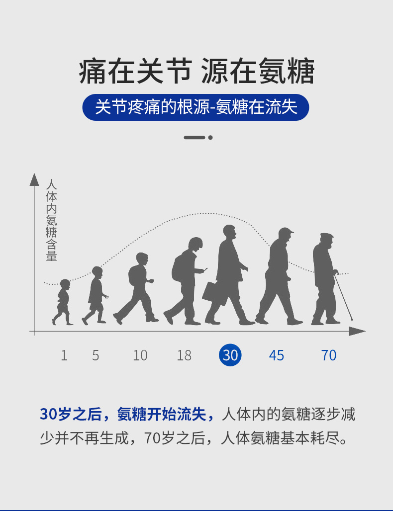 30岁以后氨糖在人体内含量不断降低且不再生成,因此需要补充软骨营养素,关节才会更灵活。5大关键营养搭配5种微量成分,润滑关节,减少冲击震动,提升营养吸收率。专利混合配方,快速消炎镇痛,有助关节恢复运动机能。