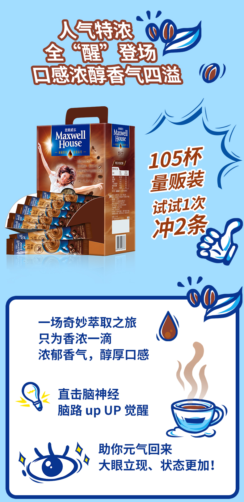 麦斯威尔经典特浓咖啡,精选上等咖啡豆,深度烘培,并经过冷凝工艺萃取咖啡精华,有如煮制咖啡般香气的醇浓咖啡,热水冲调即可饮用。