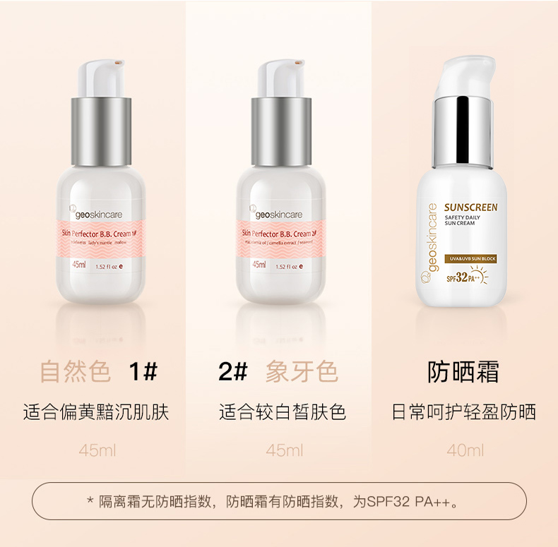 1#自然色,适合偏黄黯沉肌肤2#象牙色,适合较白皙肌肤3#紫色,适合偏暗黄肌肤