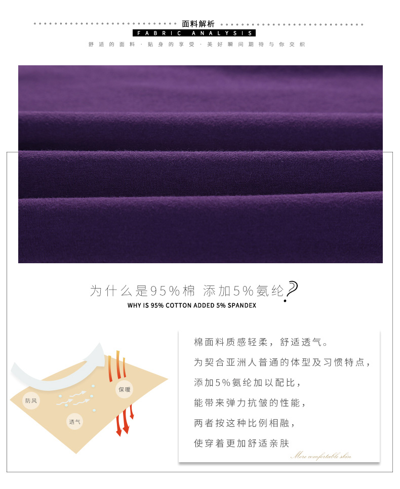 这款芬腾 女士纯棉薄款保暖内衣套装,棉面料质感轻柔,舒适透气,添加5%氨纶加以配比,能带来弹力抗皱的性能;线条简洁时尚的小圆领,适中高度可以小露性感锁骨;弹力裤腰,高弹不勒,裤脚走线均匀流畅,双线缝制,品相不俗,稳固耐磨。