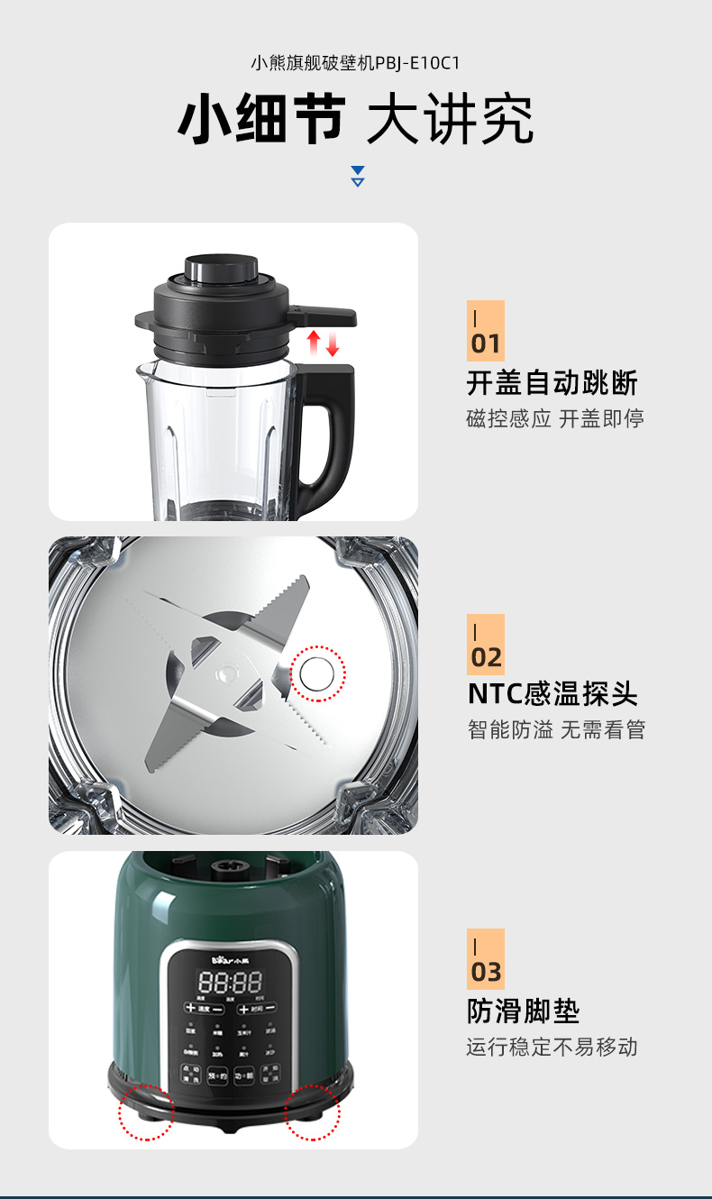 小熊 第3代 全自动破壁料理机 ,强劲电机高效破壁,1000w搅打/800w加热,搭配八叶双层精钢刀片,多维立体扰流,增加食物和刀片的接触次数,更高效的打破细胞壁,让食材水分及营养可以被充分释放,破壁细腻无渣。