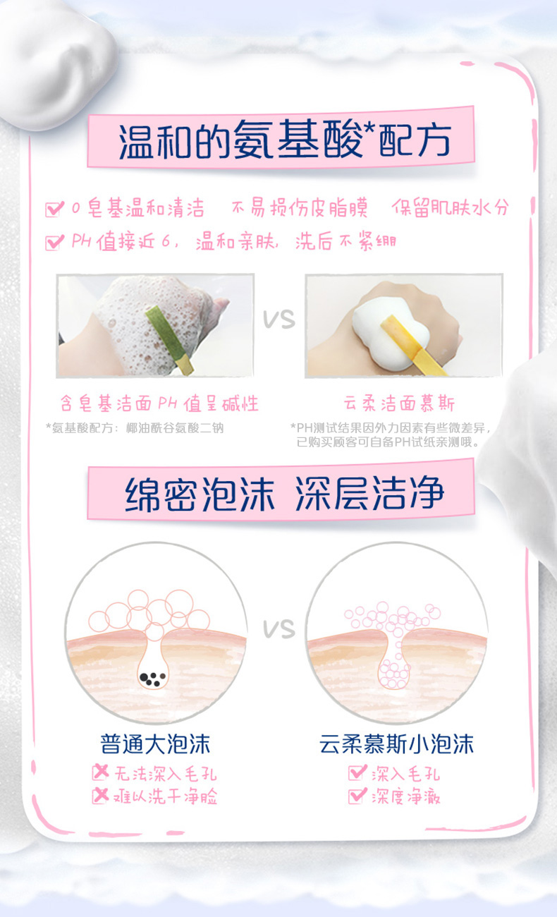 张钧甯力荐,摇一摇一按既出,唤醒云泡沫,细腻云感,云朵般细腻绵密泡沫,不添加酒精,皂基,硅酮,色素,深入毛孔,有效清洁,易冲洗不残留,水感充沛,洗出粉润少女肌。