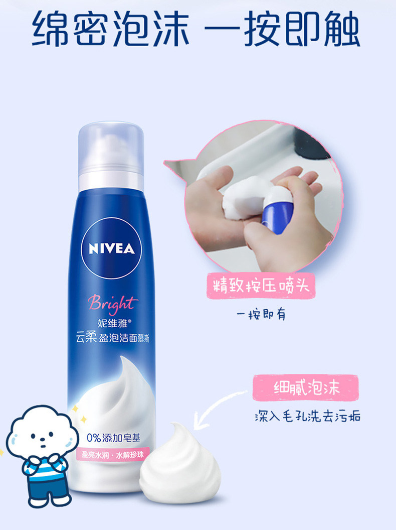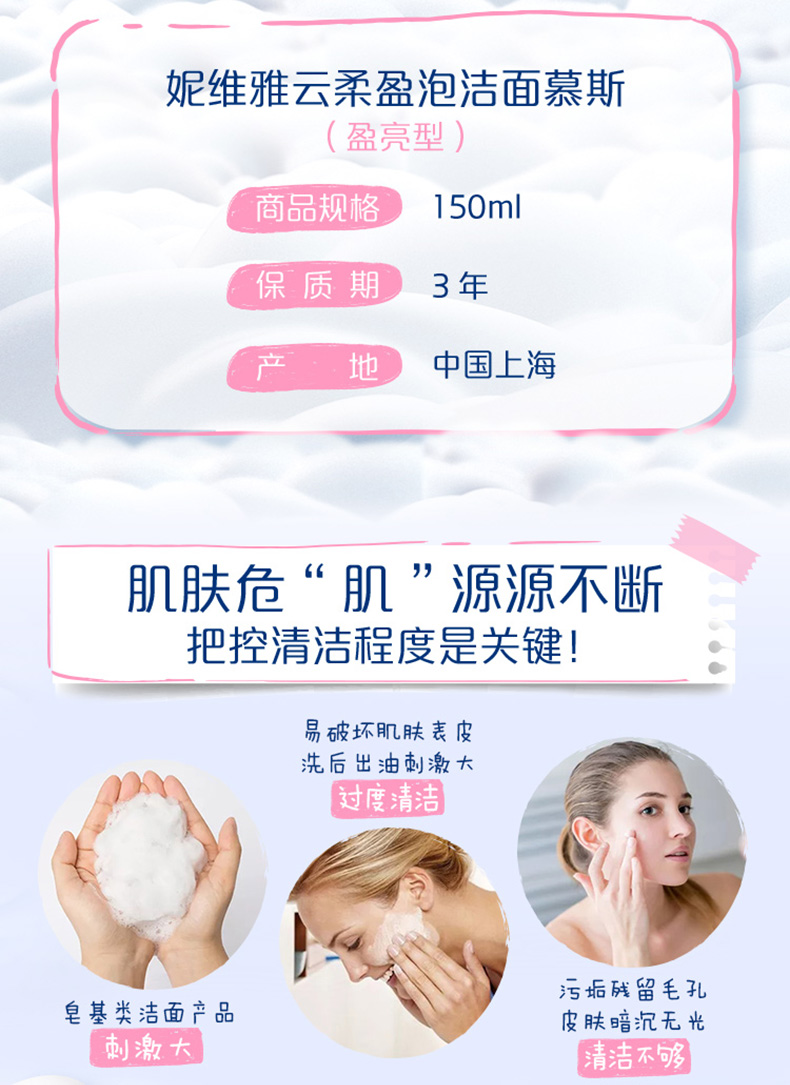 妮维雅新品,不用像膏状需要在手上打出泡泡才能洗脸,挤出来既可以了,同时不刺激皮肤。