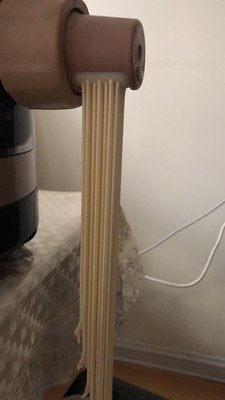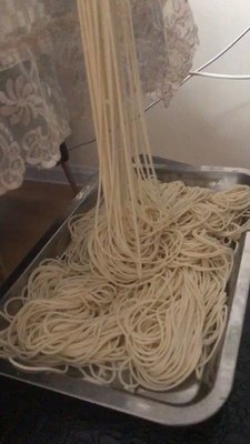 随机器会附赠量杯,按照说明书定量配比面和水的比例,先和成棉絮状,然后挤压成面条,操作起来非常简单,面条也很筋道,附上面条机实图。