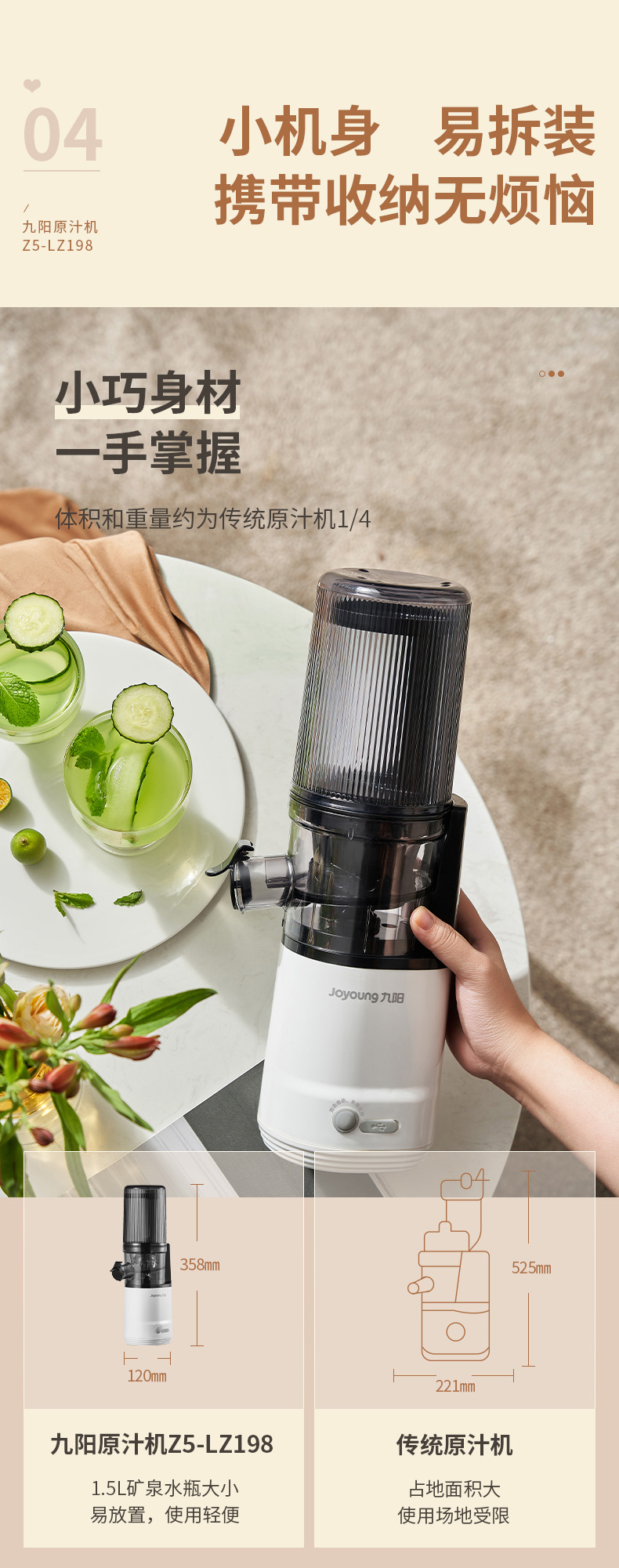 这款九阳的全自动mini原汁机,七段压榨螺杆充分挤压水果,90%超高出汁率,双滤网双重过滤工艺,还原纯汁口感,出汁口防漏盖设计,防止果汁滴漏还可控制出汁流量,一键灵动正反转防止卡渣。组件四步轻松安装、拆卸,5秒轻松清洗。打理方便。