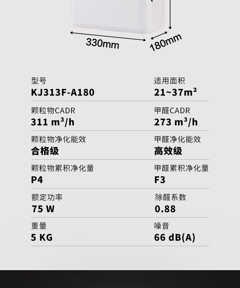 第三代氨基酸生化除醛技术,除醛系数高达0.88,除醛效率更高,氨基酸与甲醛发生交联反应,全程不生成有害物质,不会造成二次污染。上置触控操作面板,搭载高精度传感器,实时显示PM2.5数值,简单易操作;可1-12小时定时关机。有滤网更换提示功能,便于及时更换。