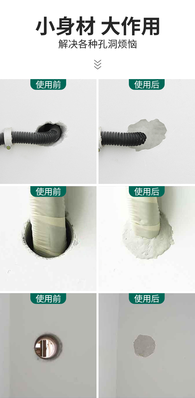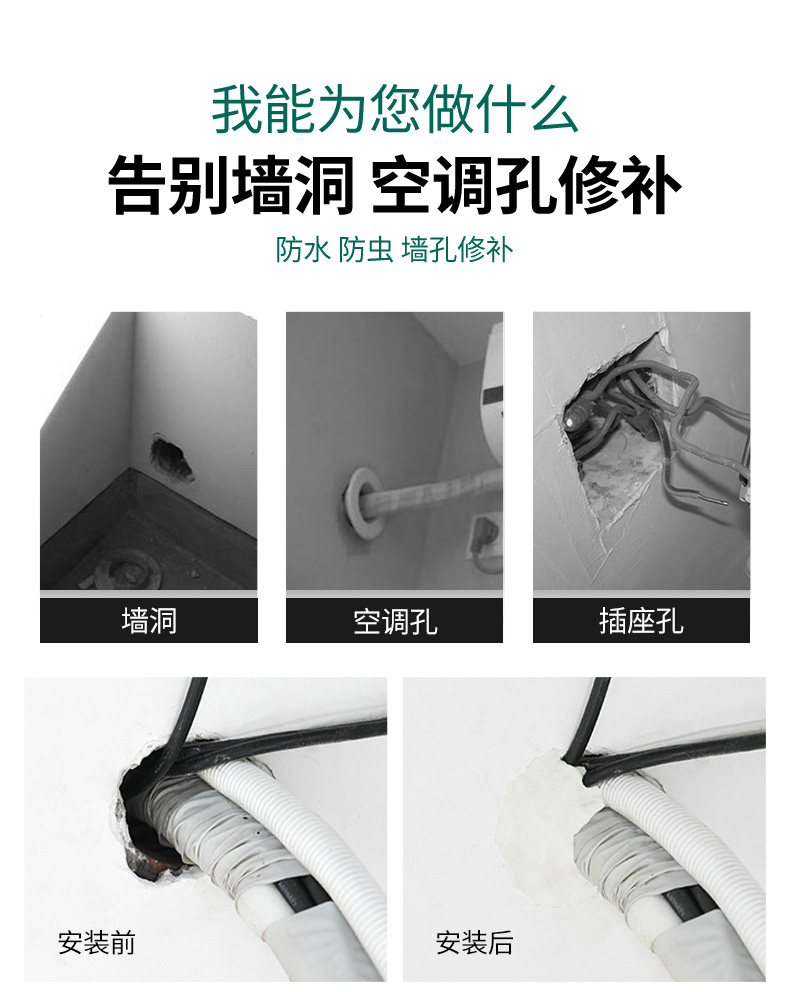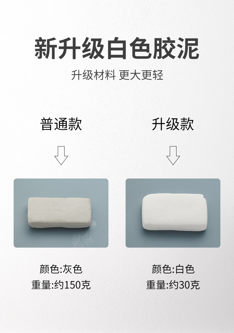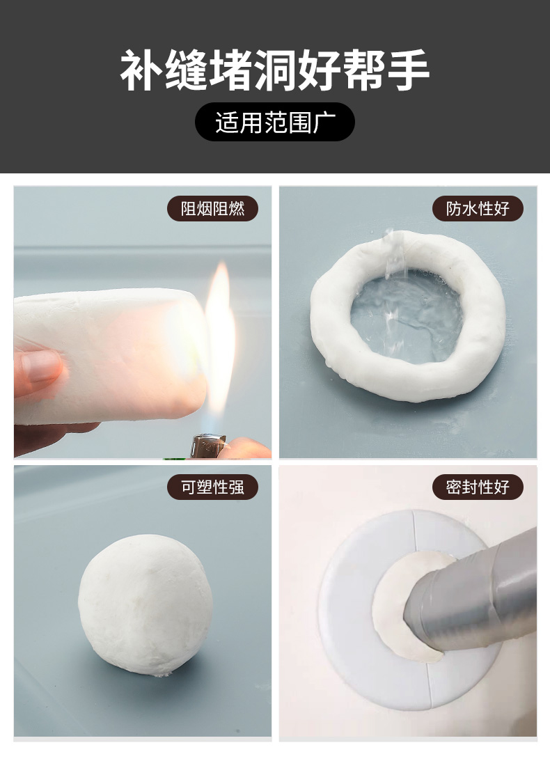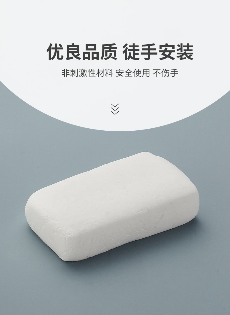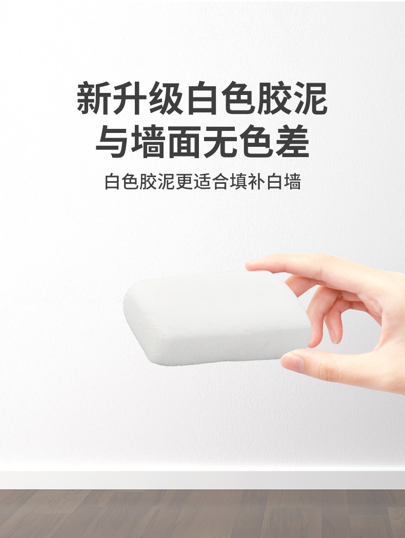 这款密封胶泥,采用聚合胶+填充粉料材质,升级纯白泥,体积不变,质量更轻,膨胀性更强,可塑性高,柔软变形,防水性好,可用来补房屋漏水,防虫、补墙洞、空调洞。