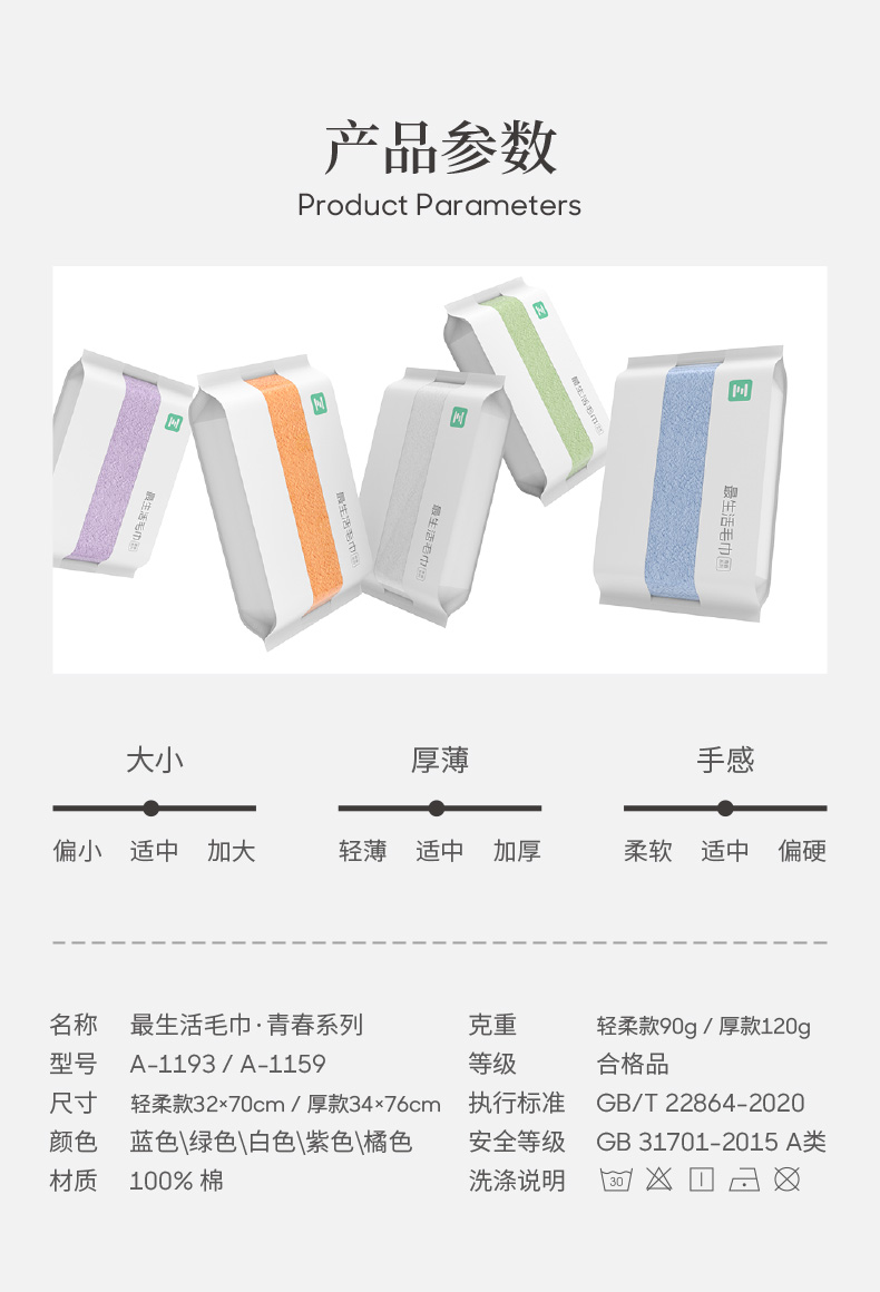 这款最生活 家用洗脸毛巾,选用100%阿瓦提长绒棉,比市面上的普通毛巾要柔软很多,长时间使用,也不会有板结的情况,加上瑞典医用级抗菌、抗螨材料,面料达到国内纺织品最高的A类婴幼儿级别标准, 非常安全;