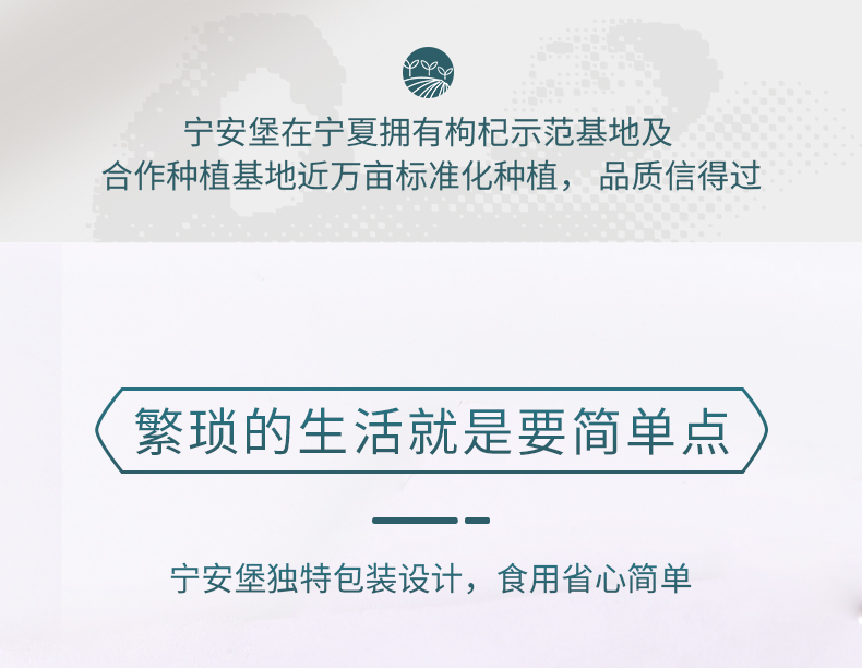 宁安堡公司是宁夏土特产品行业的龙头企业,具有完整的种植、加工、销售公司实体。迄今为止开发了二十多个系列,八十多个规格产品。主要经营中宁枸杞、八宝茶、枸杞茶、枸杞糖果、决明子茶、黄河滩枣等西部特产。 在宁夏特产行业中,宁安堡产品种类最多,市场占有率最大,销售额名列前茅,是宁夏第一品牌,也是宁夏品牌战略一个代表性企业。