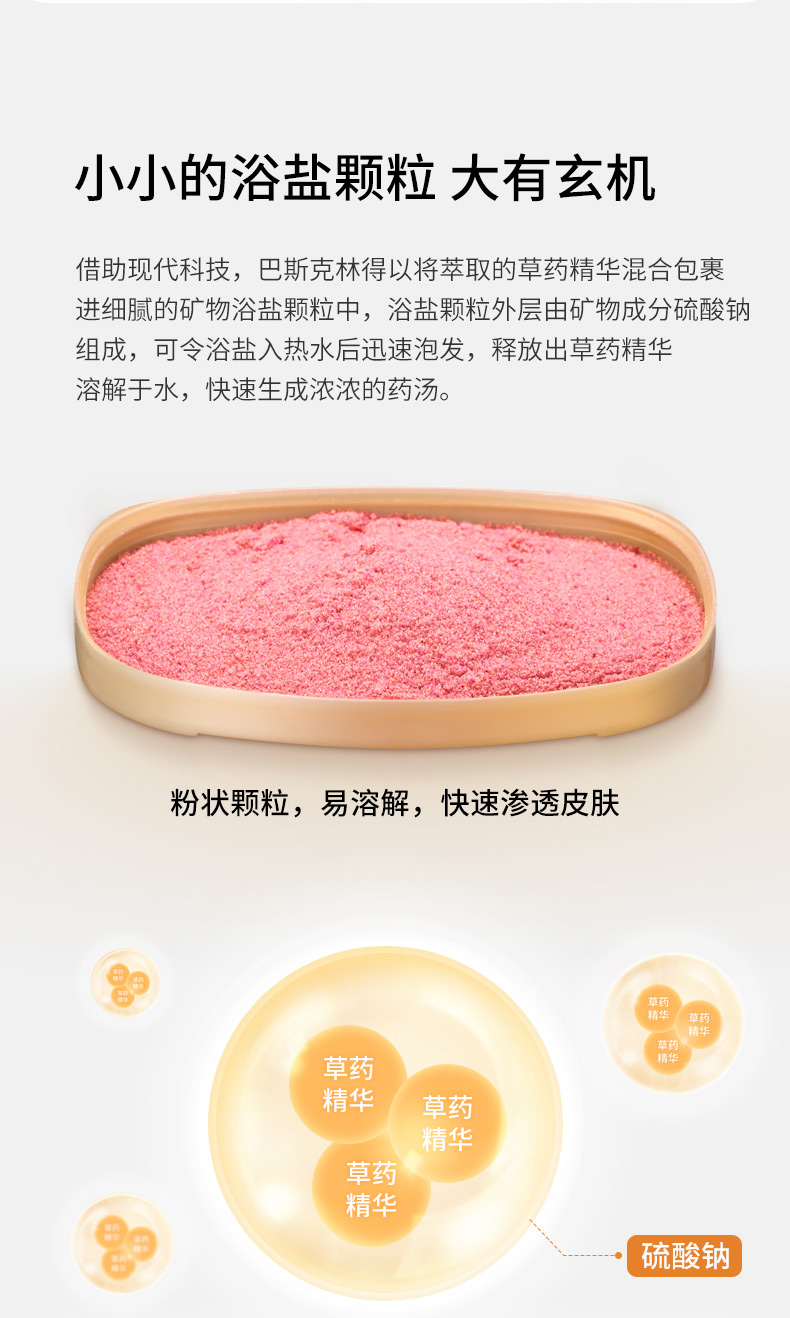 巴斯克林是日本的百年汉方浴盐专家,始于1893年,产品经常出现在高端身体护理店、星级宾馆、专业足疗馆、高端美容院等场所。