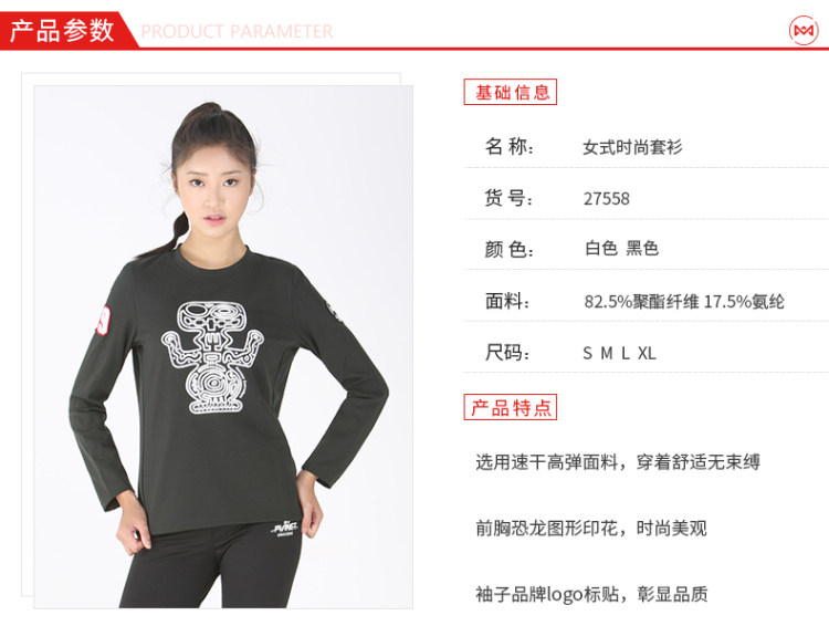 这款地球科学家圆领长袖T恤,采用的是82.5%聚酯纤维+17.5%氨纶纤维的混纺面料,速干透气效果,有很好的弹性,除了日常穿,也非常适合运动时穿着,流汗不粘身,可灵活舒展不紧绷。在版型上男直筒/女修身,胸前有一个大大的恐龙印花,肩膀上有Logo印花。