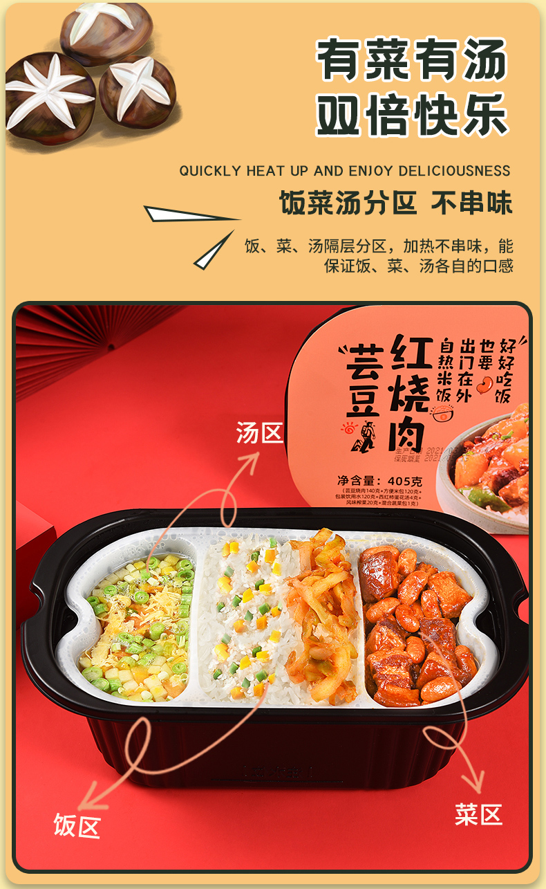 天猫蜀达人旗舰店39.8元,可领20元优惠券,实付19.8元到手,带菜汤的煲仔自热米饭405g*3盒,不一样的自热米饭,芸豆烧肉套饭、土豆牛腩套饭、黑椒牛肉套饭,3种不同的口味搭配随意搭配,携带方便,夜宵、出差、户外必备领券链接点此