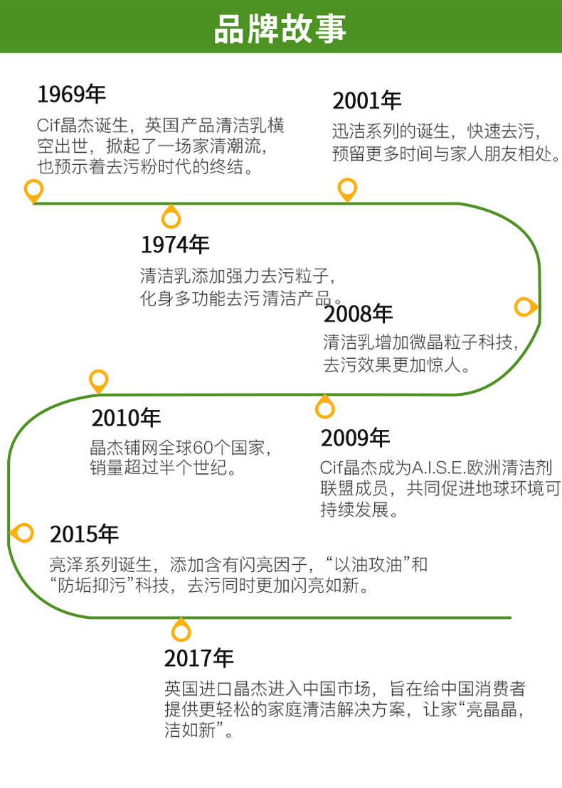 英国的Cif晶杰,于1969年在法国诞生,在近60年的历史里,为全球亿万家庭带来卓越的洁净体验,目前在50多个国家有售,且销量遥遥领先,这便是对Cif晶杰清洁能力最好证明。