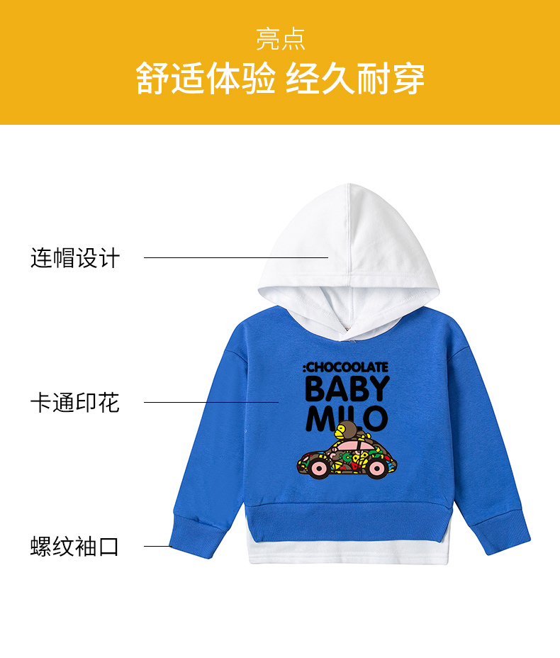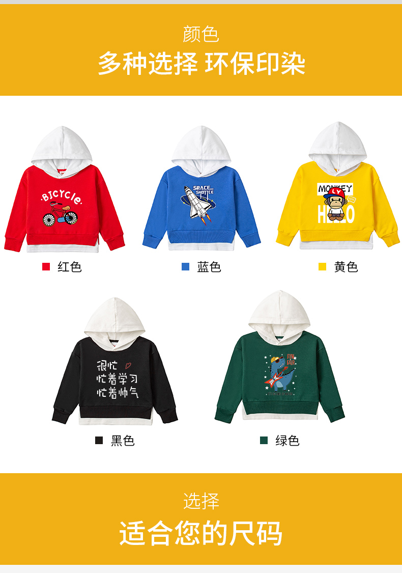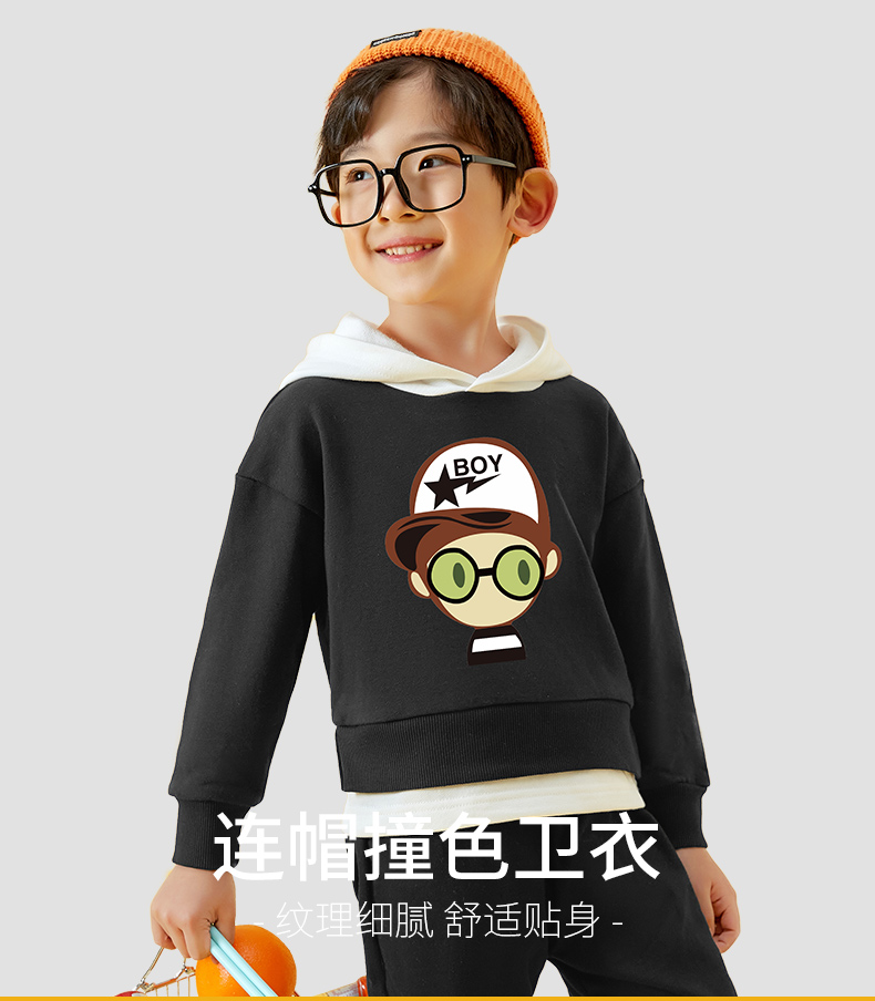 采用100%新疆精梳棉面料、面料薄厚适中,柔软亲肤,穿着舒适透气,精致走线,垂顺平滑,不褪色不缩水不变形不起球。简约版型,时尚撞色设计,卡通印花为你打造多变造型,适合春秋穿着。