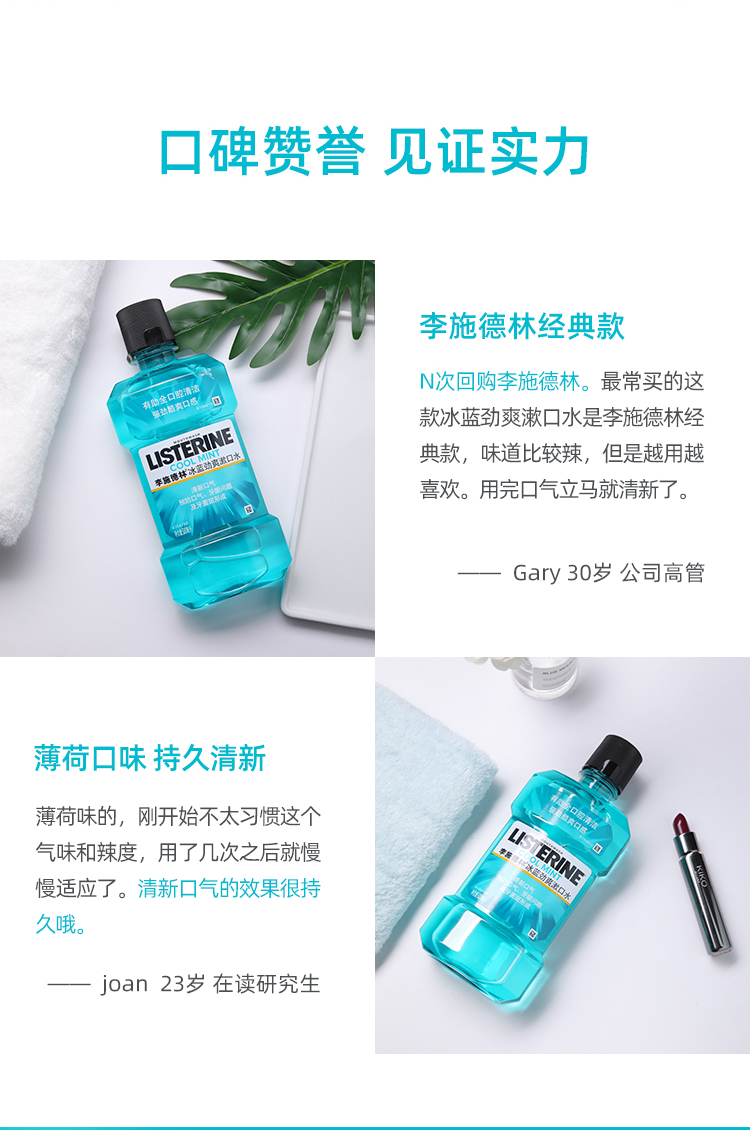 提起漱口水,那么李施德林在这行业可谓响当当!李施德林拥有125年的历史,它以消毒之父Joseph Lister命名。李施德林一直坚持其杀菌的核心功效,是第一个被美国牙医学会认可的非处方品牌漱口水。