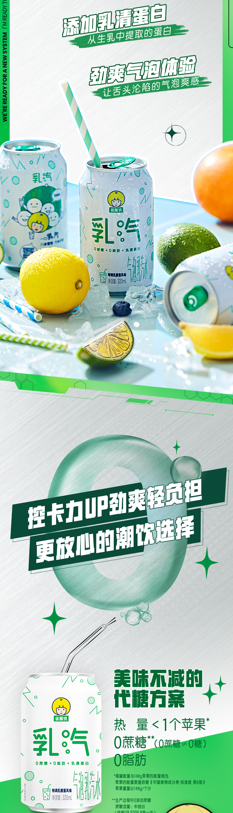 这款伊利 乳汽 柠檬/乳酸菌气泡乳汽水 ,规格:320ml*12罐,特调乳酸菌风味,添加了从生牛乳种提取的乳清蛋白,0酒精、0糖、0卡、0脂肪、有气,不仅满足年轻消费者追求健康的需求,也带来了畅爽体验。