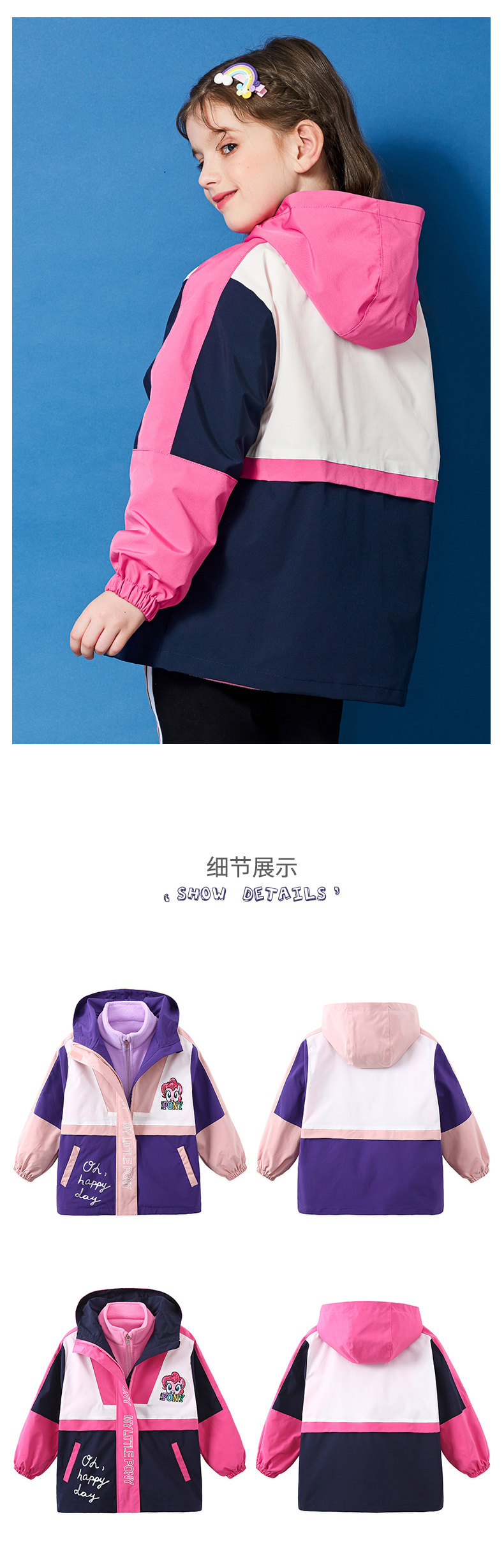 天猫mylittlepony童装旗舰店389.9元,下单立减160.25元,可领60元优惠券,实付169.65元到手,这款小马宝莉女童三合一冲锋衣,外层衣服采用100%聚酯纤维面料,表层还有防水膜,拥有不错的防风、防水效果。在款式上,一体连帽连帽设计、弹力袖口、双层门襟,衣面有时尚的小马图案,色彩鲜艳,妥妥的颜值担当。