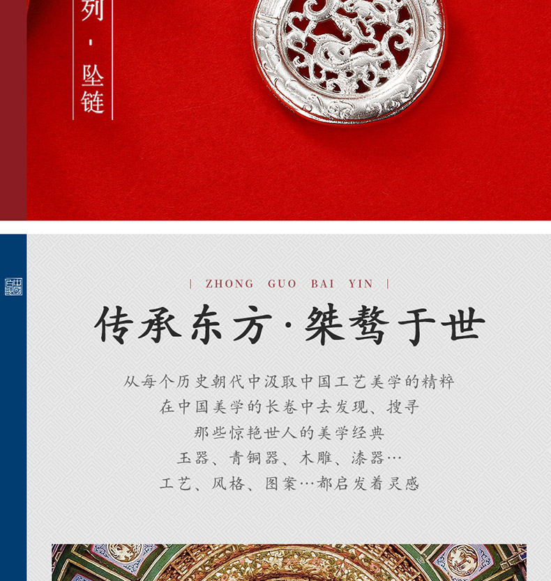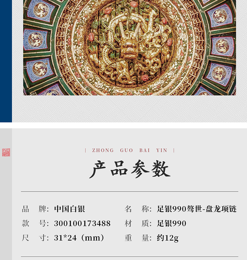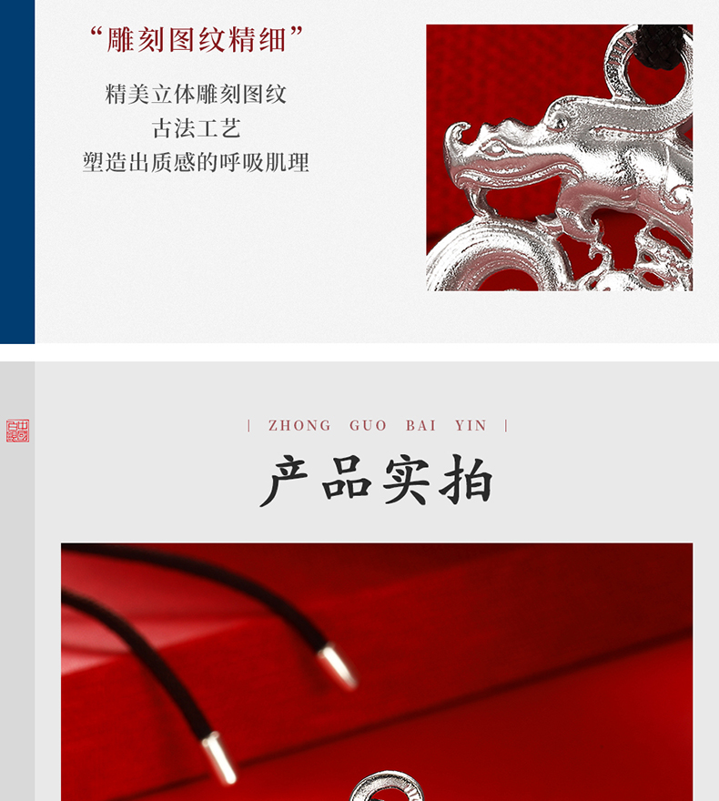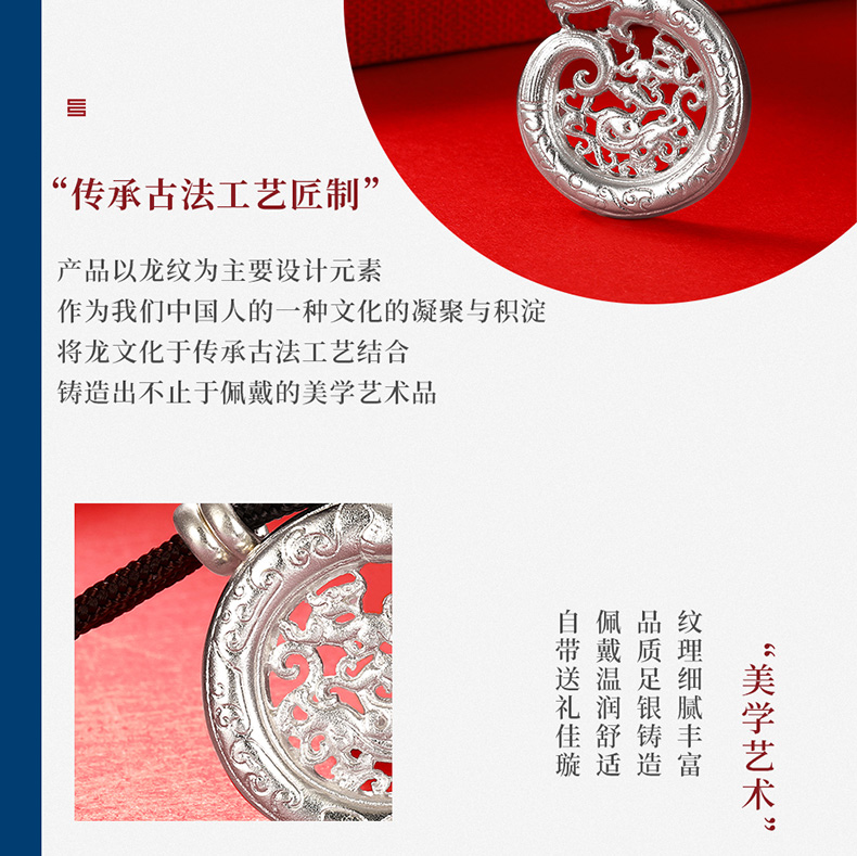 天猫中国白银集团有限公司旗舰699元,可领320元优惠券,实付379元到手;中国白银集团 盘龙吊坠,传承古法工艺匠制。产品以龙纹为主要设计元素,作为国人的一种文化的凝聚与积淀,将龙文化于传承古法工艺结合,铸造出不止于佩戴的美学艺术品。国金雕刻图纹个业生公,精美立体雕刻图纹,古法工艺,塑造出质感的呼吸肌理。