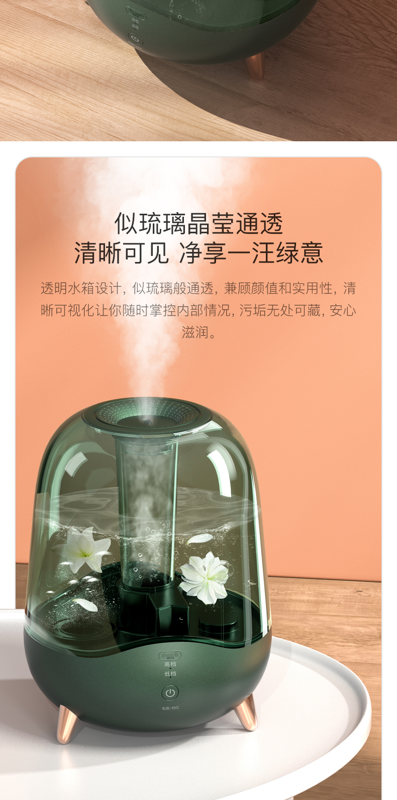 小米生态链旗下德尔玛品牌保障,德尔玛 DEM-F325 加湿器,晶莹剔透水箱, 超声波焊接,美观防漏水,5L大容量,档雾量加湿 超声波焊接。300mL/h大雾量,瞬速驱散干燥。2档雾量,大小随心调。水雾分流系统,送雾细腻高远。