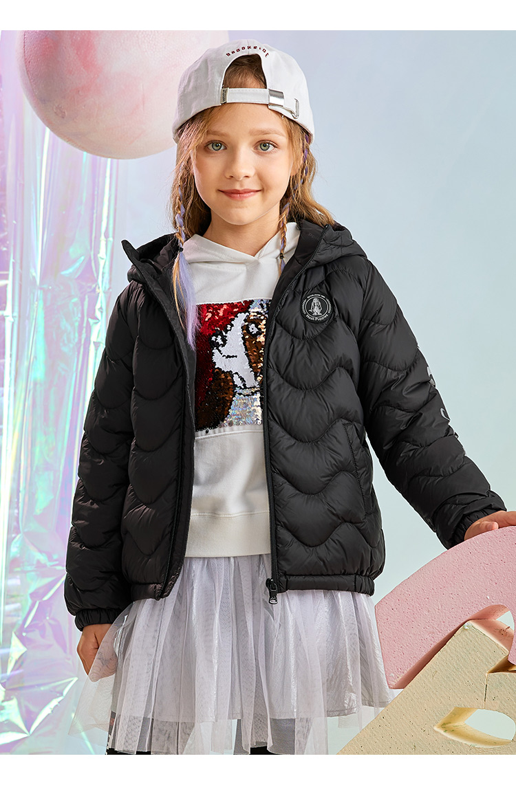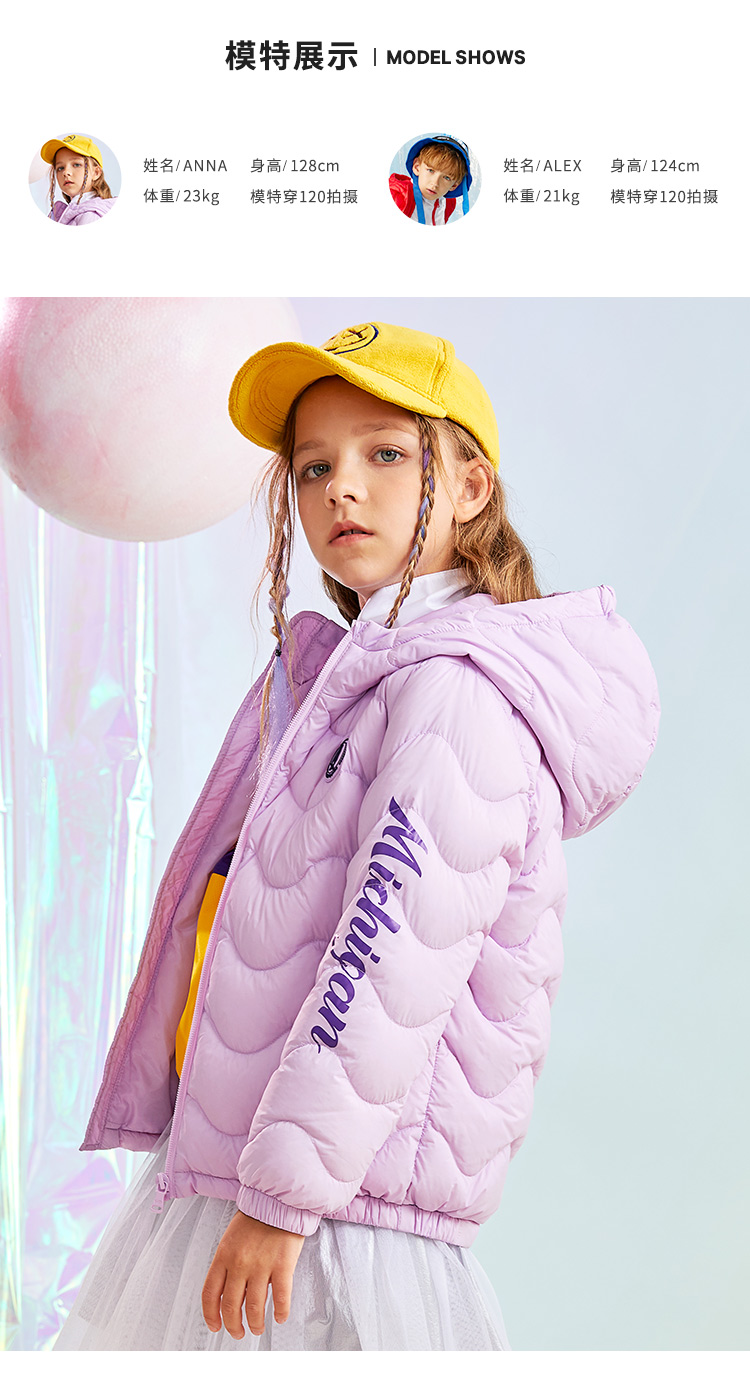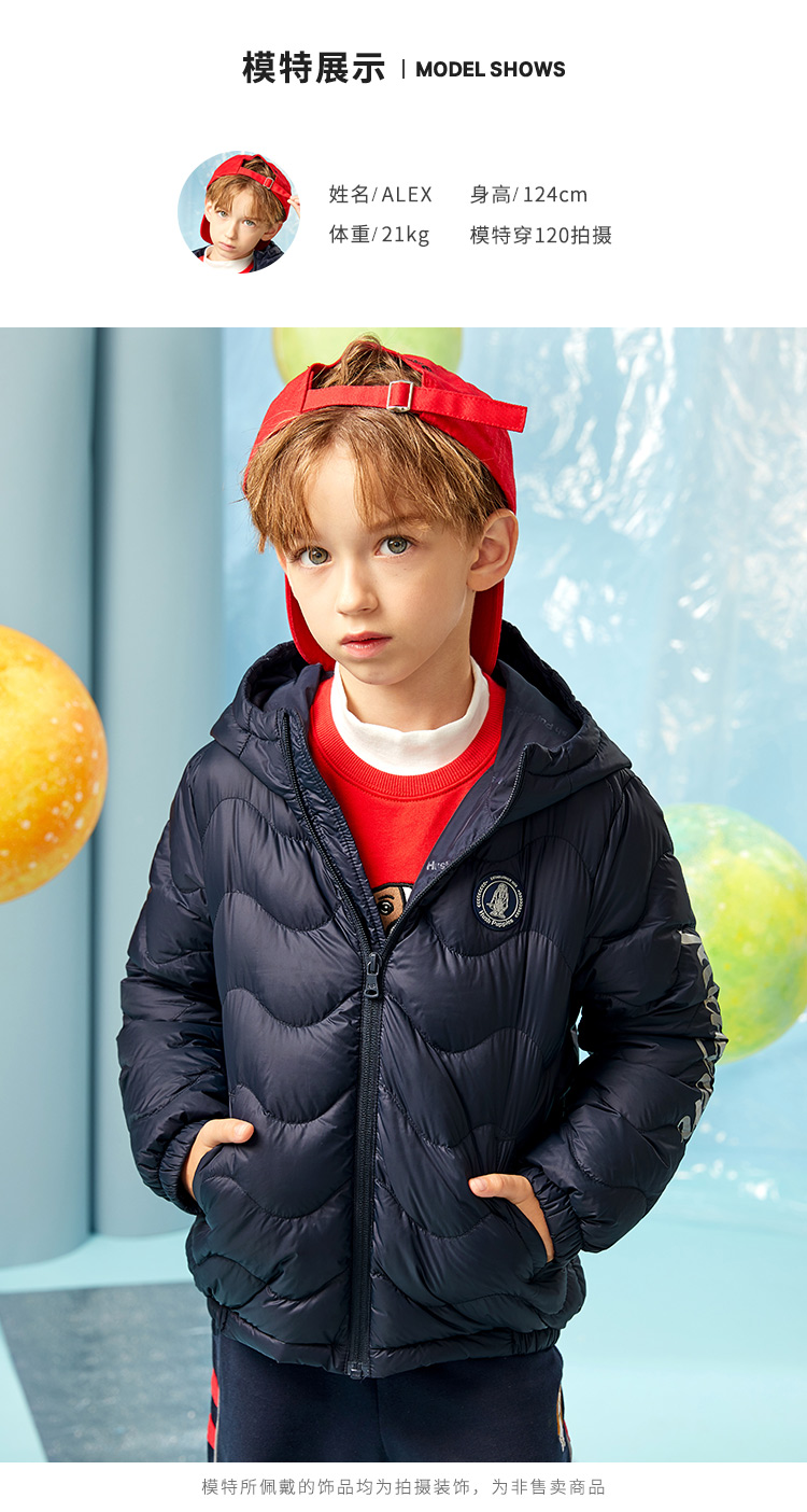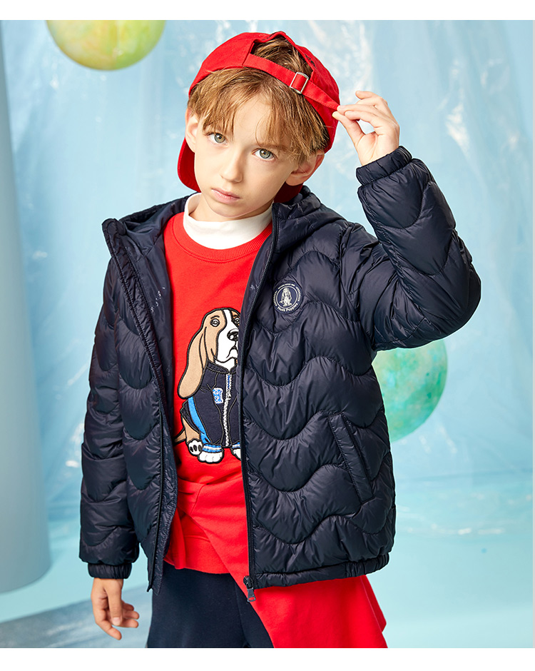 这款暇步士 儿童白鸭绒连帽保暖羽绒服,精选420T尼丝纺面料,面料柔软亲肤,防风防泼水,甄选大绒朵90白鸭绒填充,轻质保暖,分格均匀填充不易跑绒。贴心软厚连帽,抵御寒风侵袭。实用斜插兜设计,方便携带小物件。时尚斑点狗LOGO印章,彰显品牌更显时尚,合体版型贴合身体,上身舒适保暖。