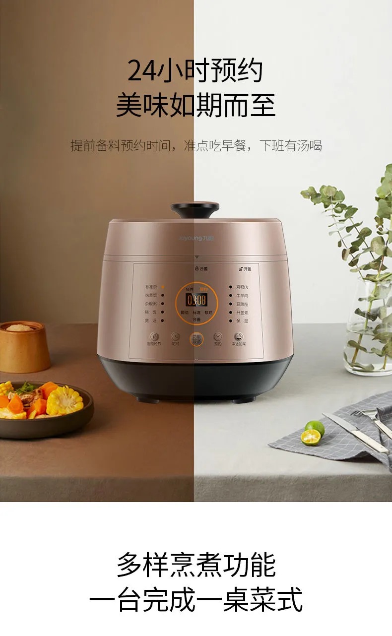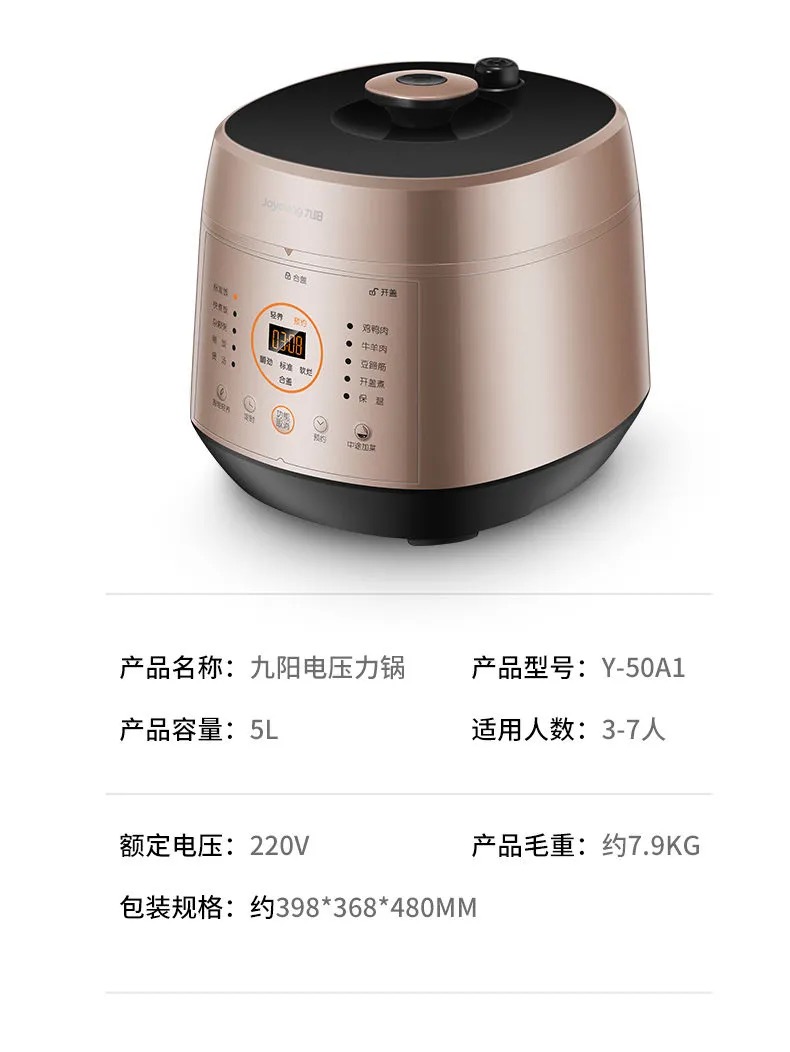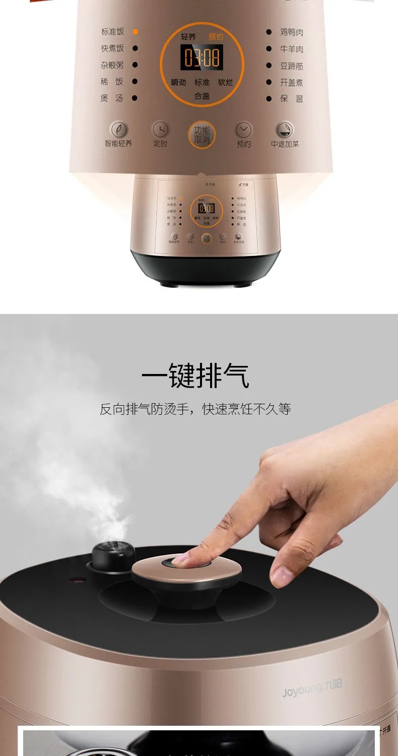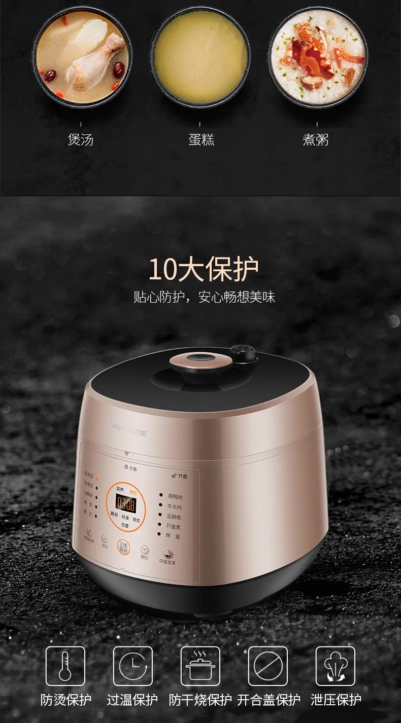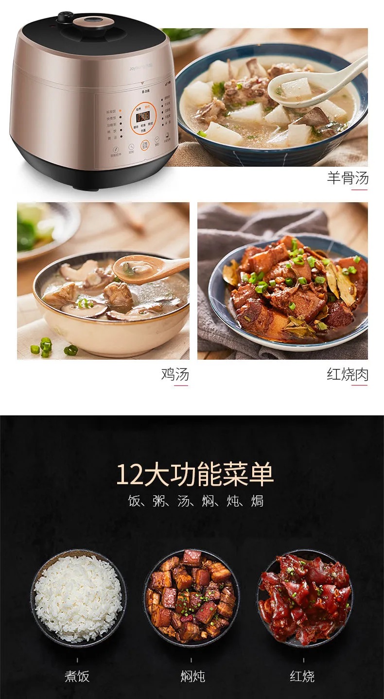 这款九阳的电压力锅,有着5L的大容量,一锅配备双胆,能够更好的浸润食材,帮助入味,搪瓷内胆为煲汤、炖肉专用,储热力好;陶晶内胆适合米饭、煮粥专用,导热不粘锅。