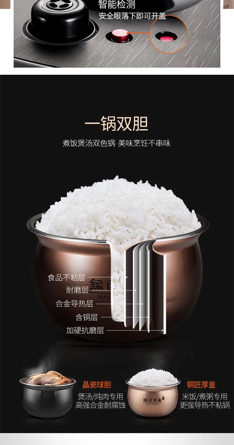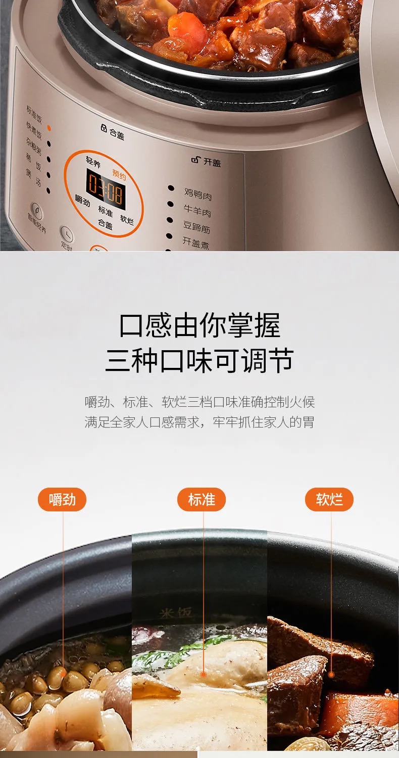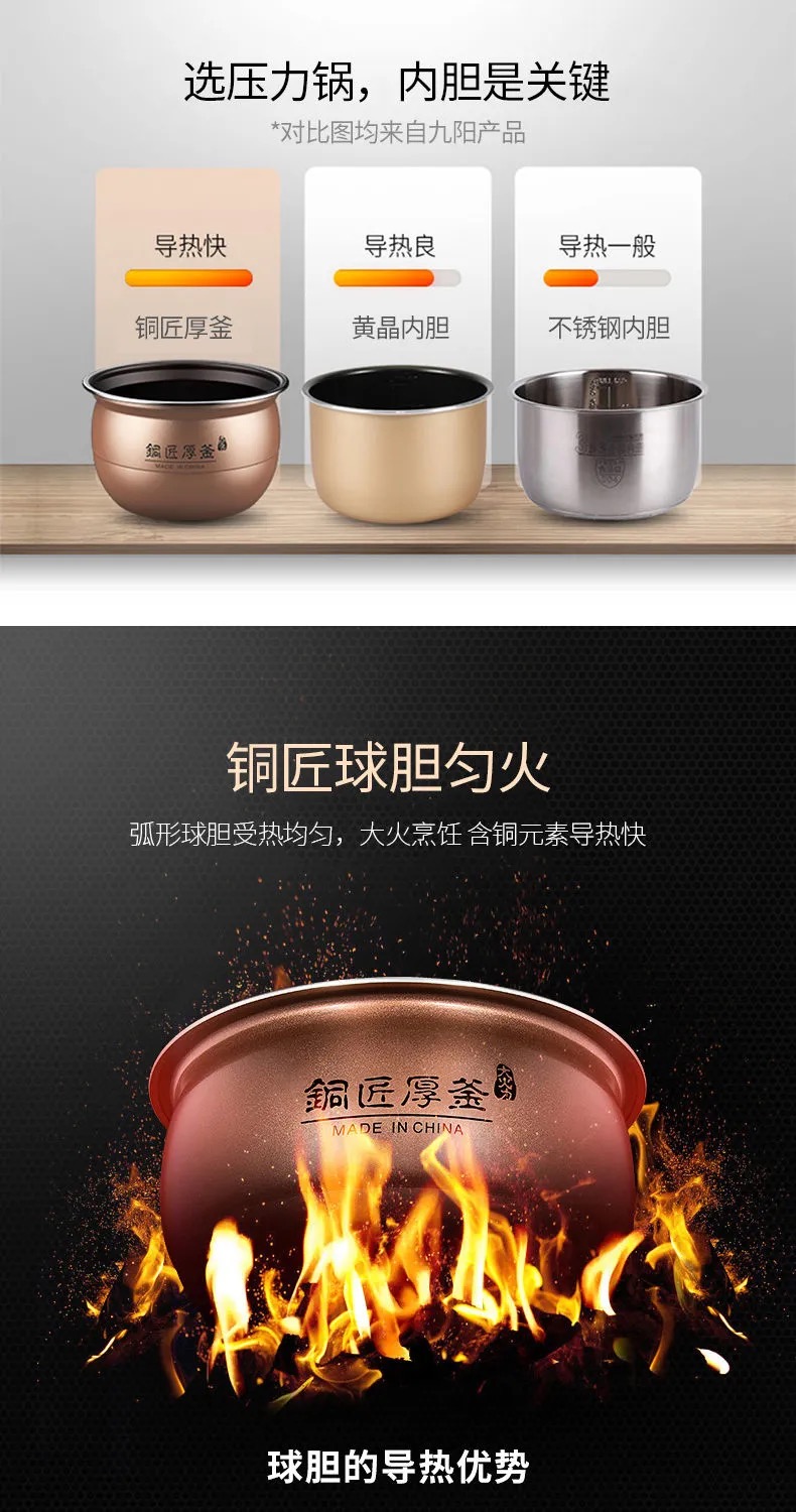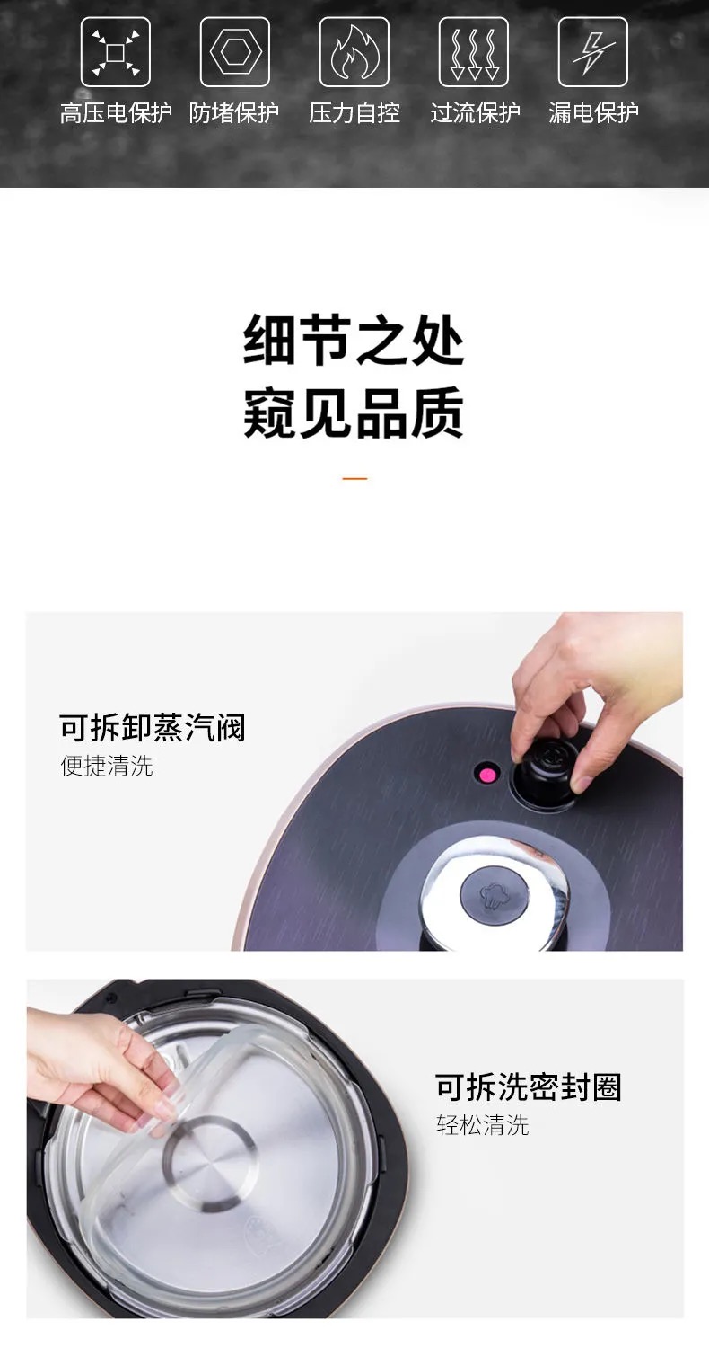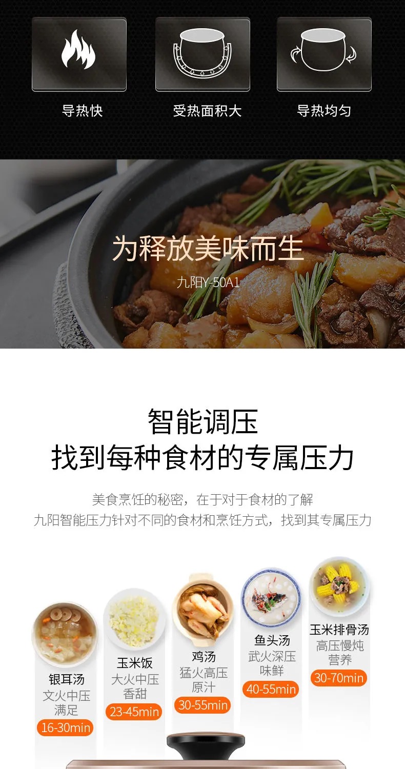 这款九阳的电压力锅,有着5L的大容量,一锅配备双胆,能够更好的浸润食材,帮助入味,搪瓷内胆为煲汤、炖肉专用,储热力好;陶晶内胆适合米饭、煮粥专用,导热不粘锅。