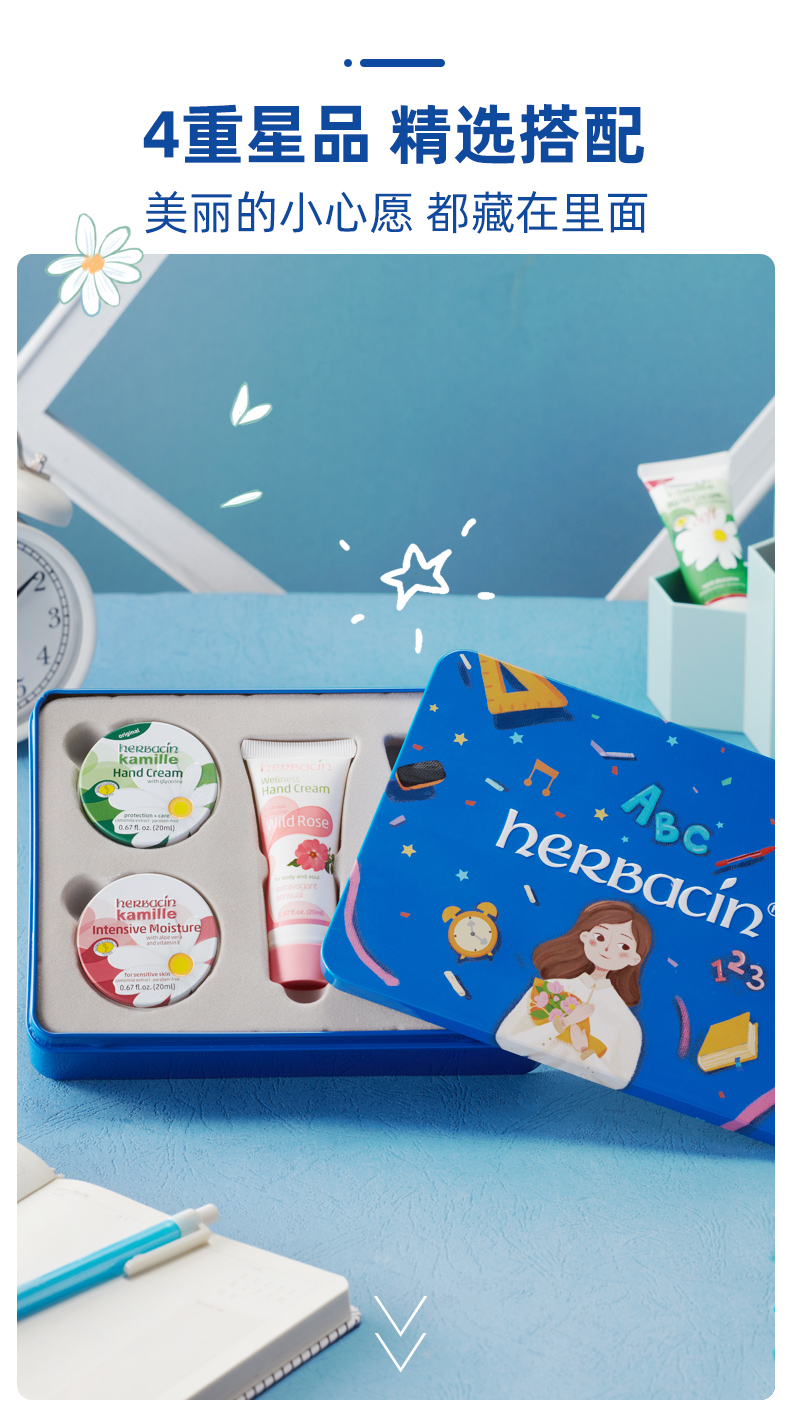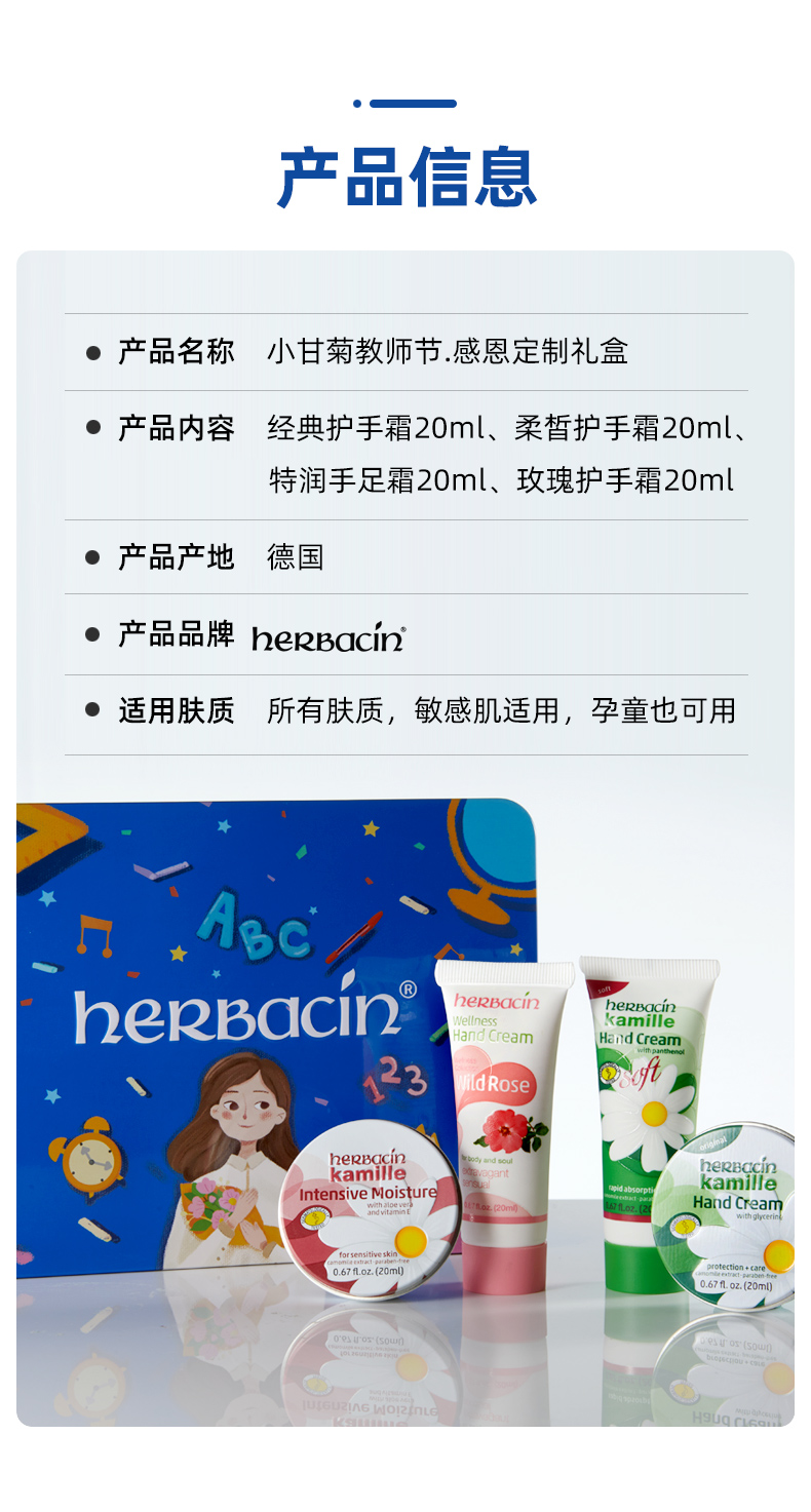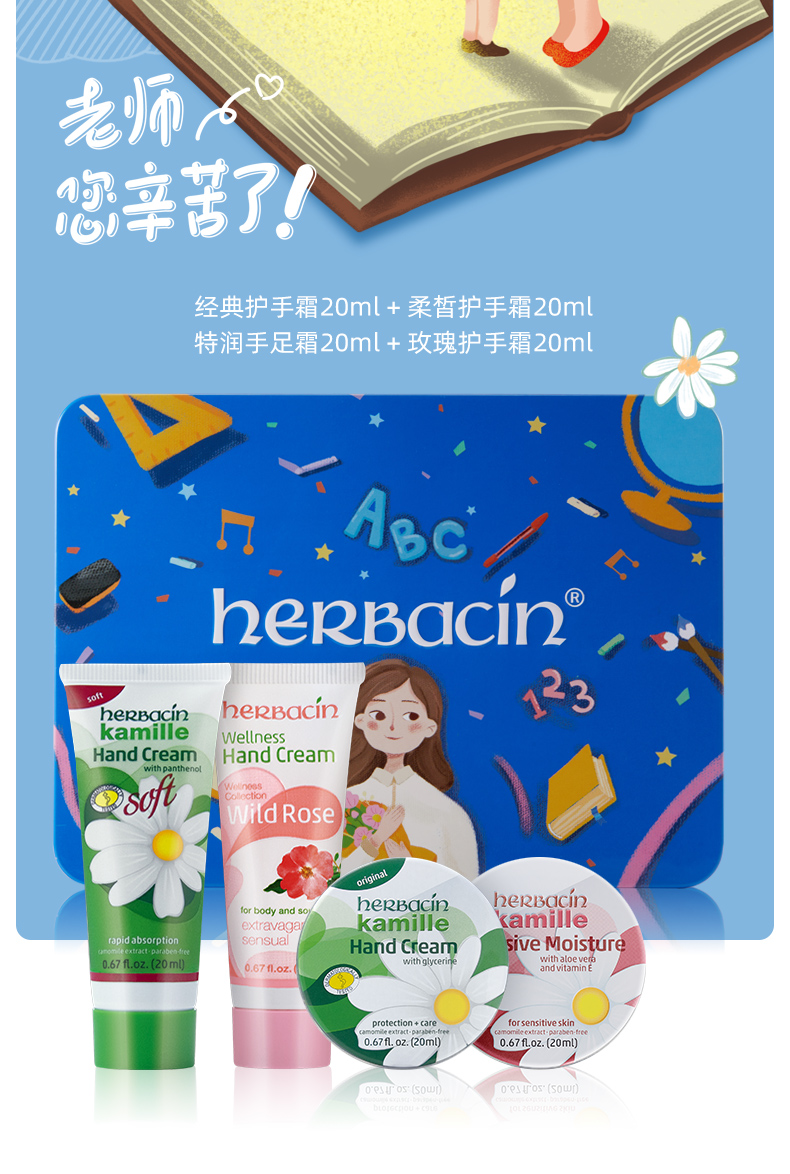 天猫herbacin化妆品旗舰店88元,可领10元优惠券,实付78元到手,下单赠送礼袋+贺卡,第2件、第3件同价,秋冬季也快到了,非常实用的教师节好礼,包含经典护手霜、柔皙护手霜、玫瑰护手霜和特润手足霜各20ml。