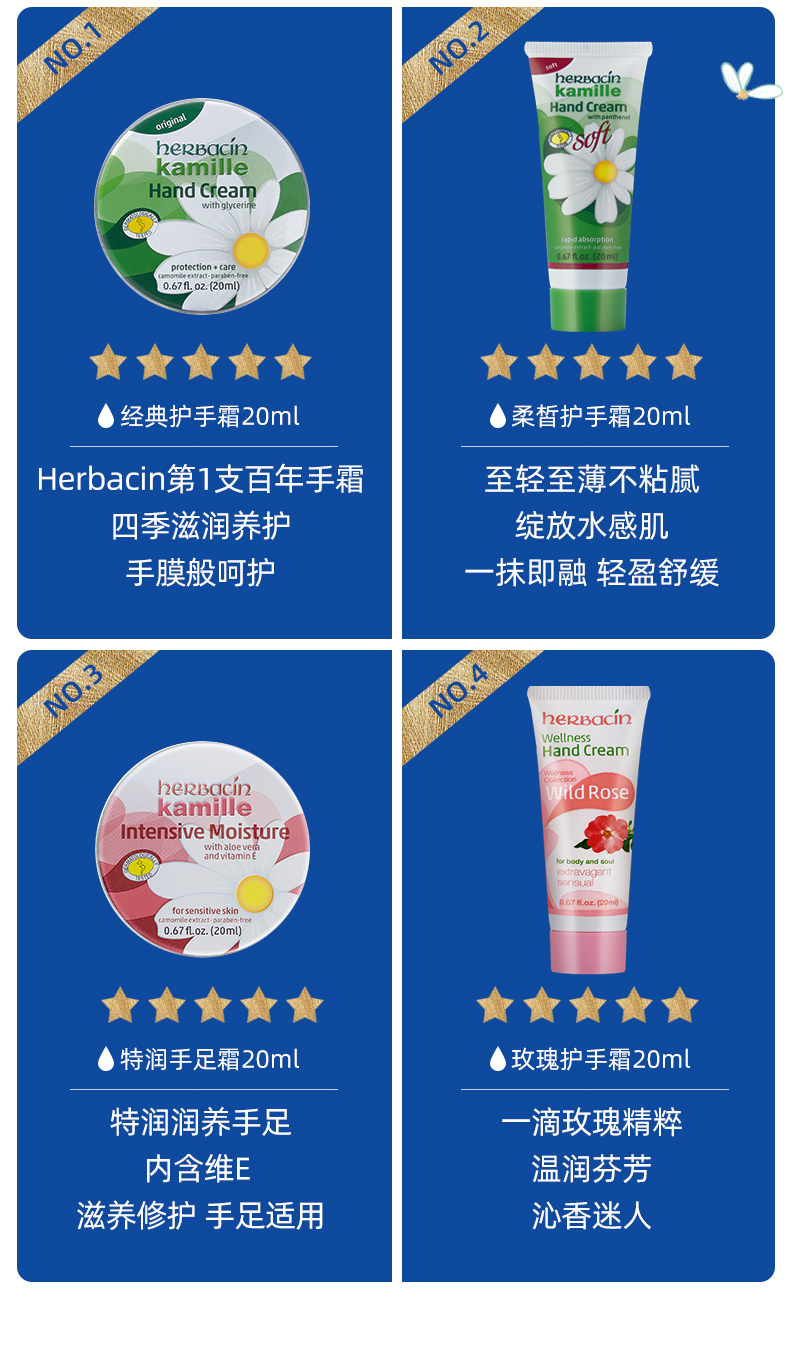 Herbacin德国小甘菊以自行种植产品所需的植物而闻名全欧洲,依传统配方制造产品,是德国的经典护肤品牌之一。