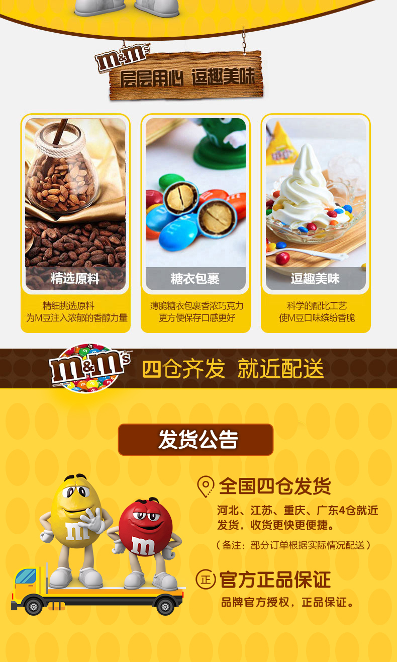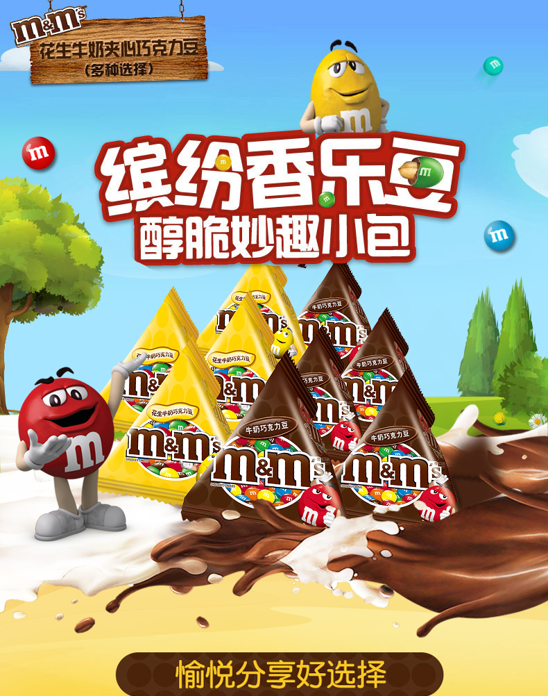 mm巧克力豆是美国玛氏集团与好时公司一同打造的知名巧克力豆品牌,始于1941年。mm巧克力豆令人印象深刻的首先当是活泼有趣的卡通形象,除了有颜色鲜亮的外表以外,还有精心制作出来的香浓牛奶巧克力,入口香甜,口感浓郁。
